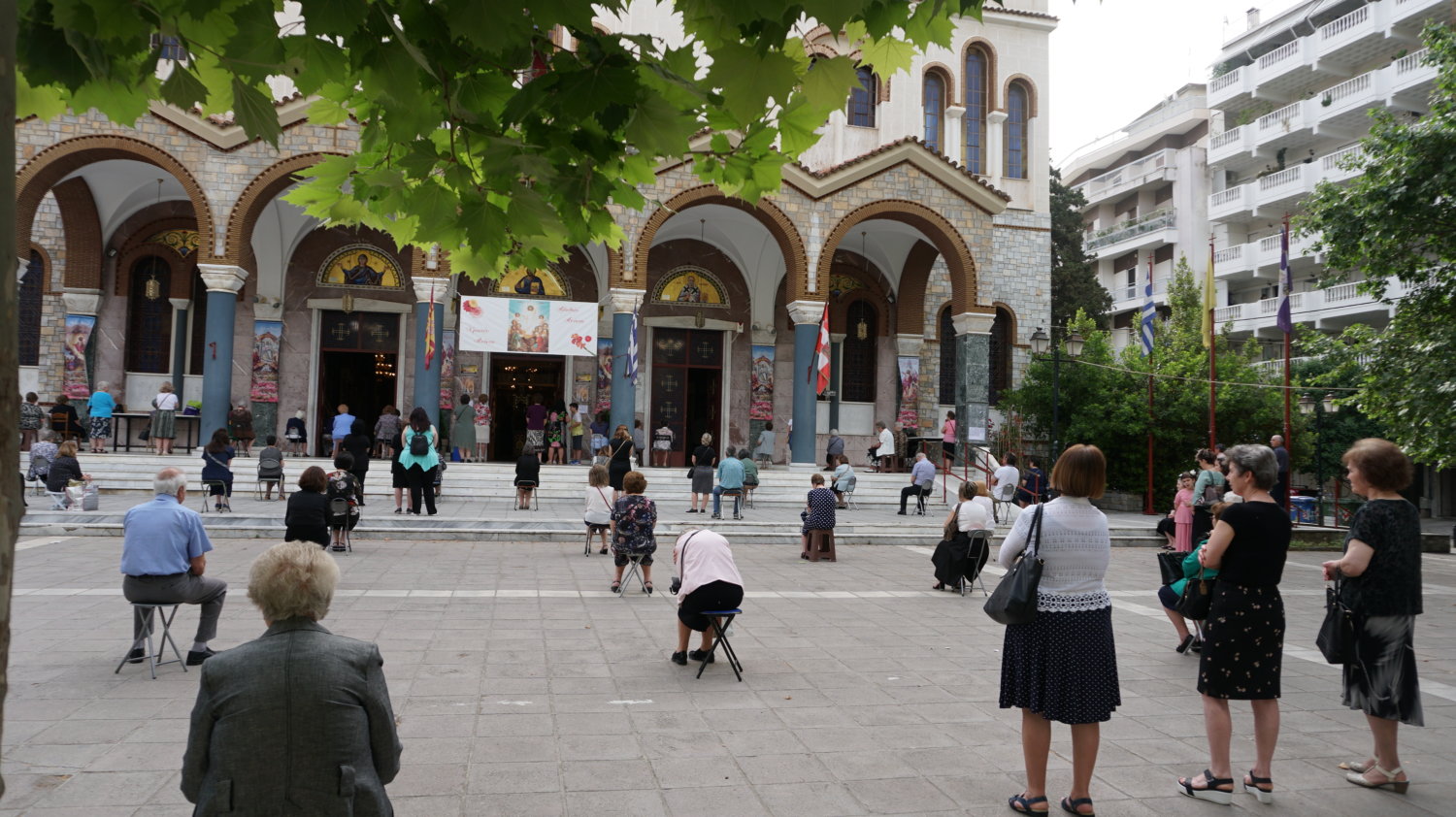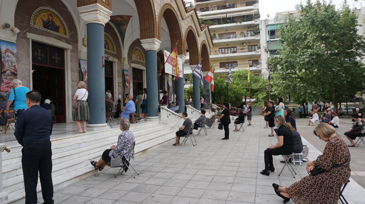 Δείτε χαρακτηριστικά φωτογραφικά στιγμιότυπα από τον Ιερό Ναό Αγίου Νικολάου Λάρισας, όπου οι πιστοί περιμένουν τη σειρά τους με βάση τα μέτρα που έχουν ληφθεί για τις θρησκευτικές τελετές.