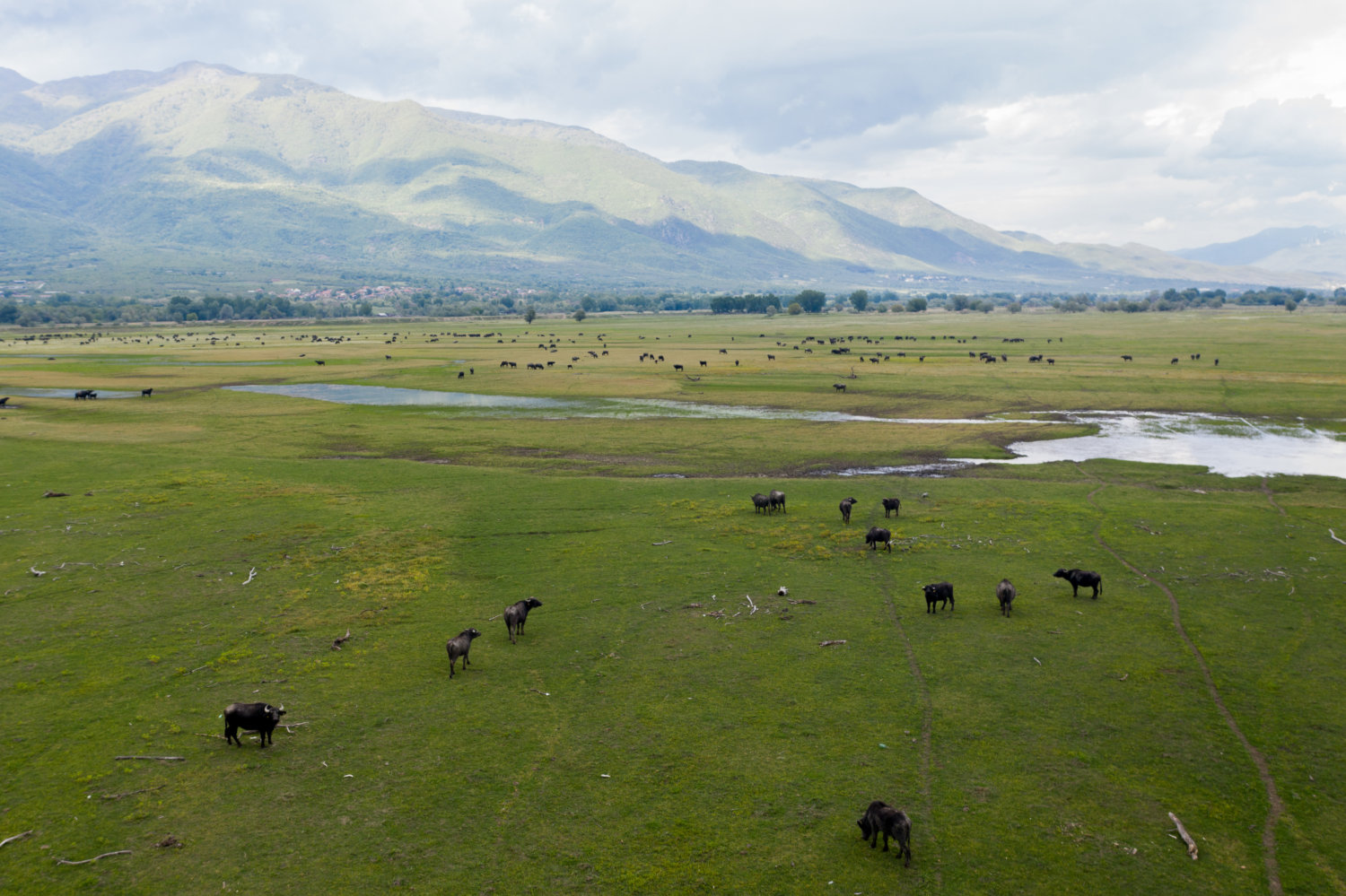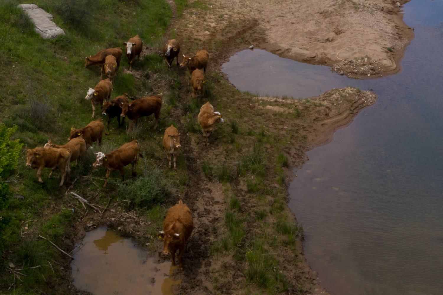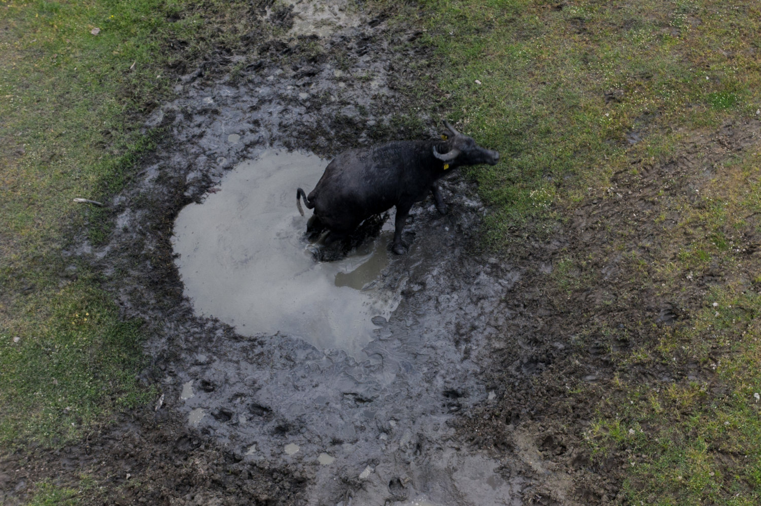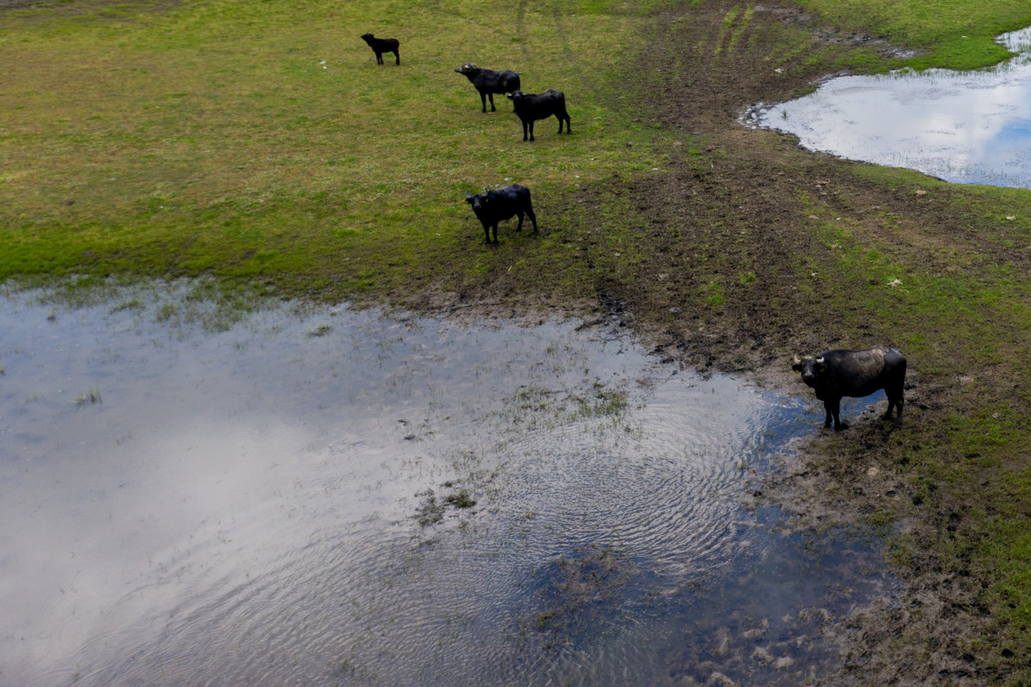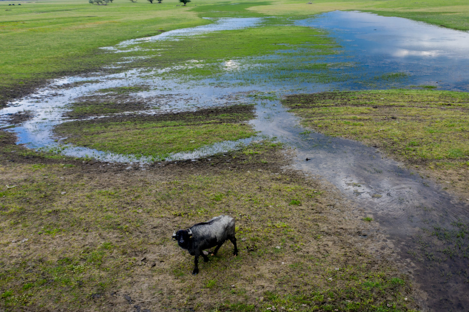 Κοπάδια από βουβάλια βόσκουν στις όχθες της λίμνης Κερκίνης. Οι αεροφωτογραφίες είναι του Αντώνη Νικολόπουλου για την Eurokinissi.