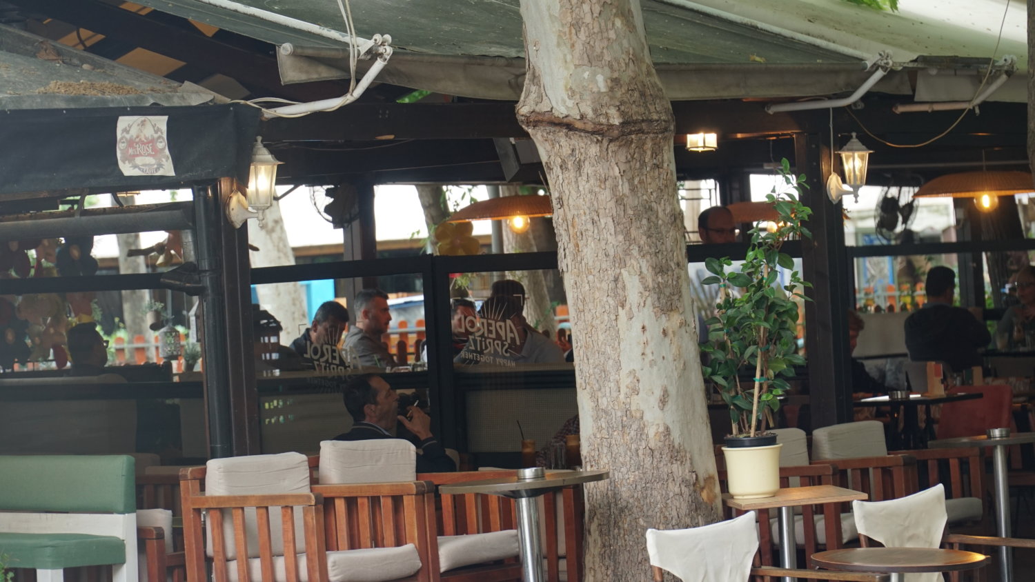 Ήδη οι πρώτες παρέες Λαρισαίων έχουν λάβει θέσεις και απολαμβάνουν τον καφέ τους.
