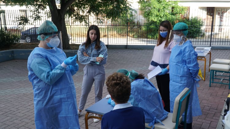 Σε εξέλιξη είναι από νωρίς το πρωί οι δειγματοληψίες σε μαθητές νηπιαγωγείων και δημοτικών σχολείων στη συνοικία της Νέας Σμύρνης.