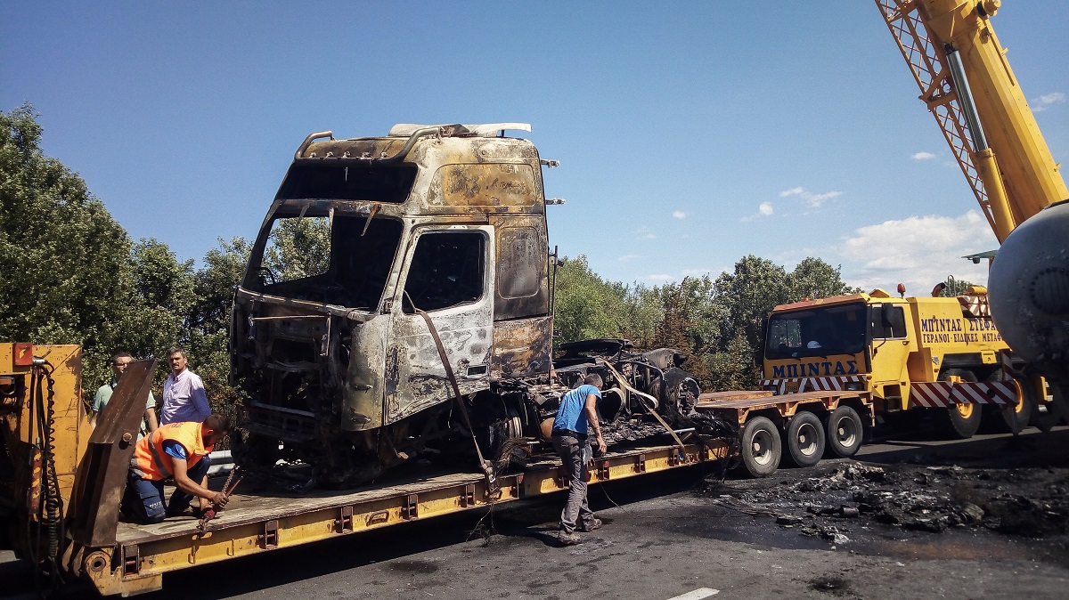 Για άγνωστο λόγο εξετράπη της πορείας του και πήρε φωτιά η καμπίνα του οδηγού και παρά τις προσπάθειες των πυροσβεστικών δυνάμεων δεν κατέστη δυνατή η αποφυγή του μοιραίου συμβάντος.