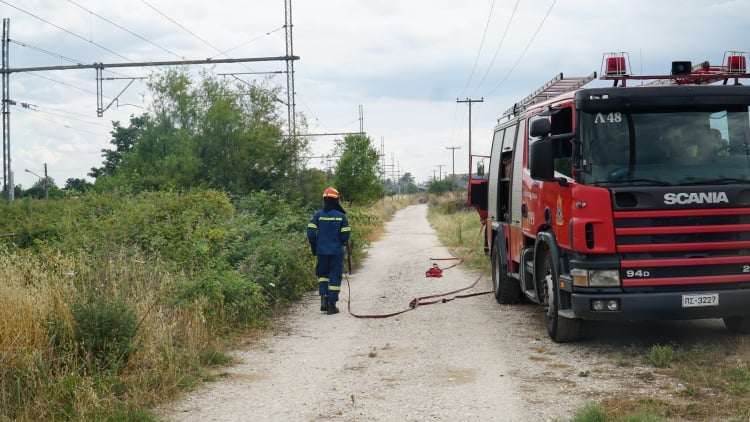 Συγκεκριμένα στην Παλαιά Εθνική Λάρισας-Θεσσαλονίκης κοντά στον υποσταθμό της ΔΕΗ, ξέσπασε φωτιά σε εγκαταλελειμμένα βαγόνια τρένου, η οποία γρήγορα μεταπήδησε στα ξερά χόρτα και απείλησε τον υποσταθμό.