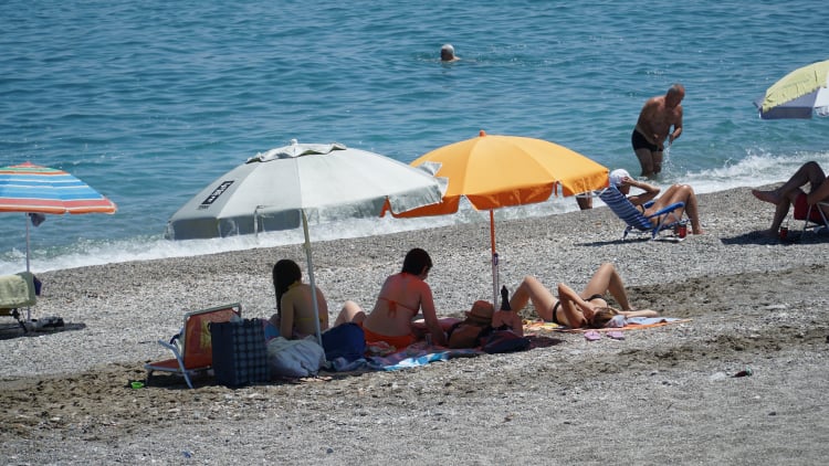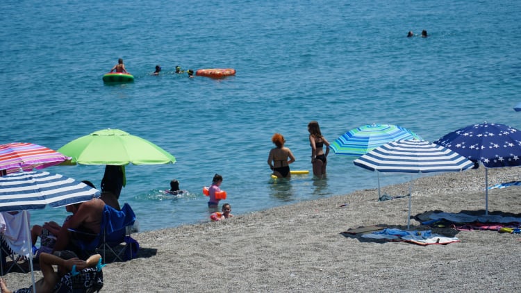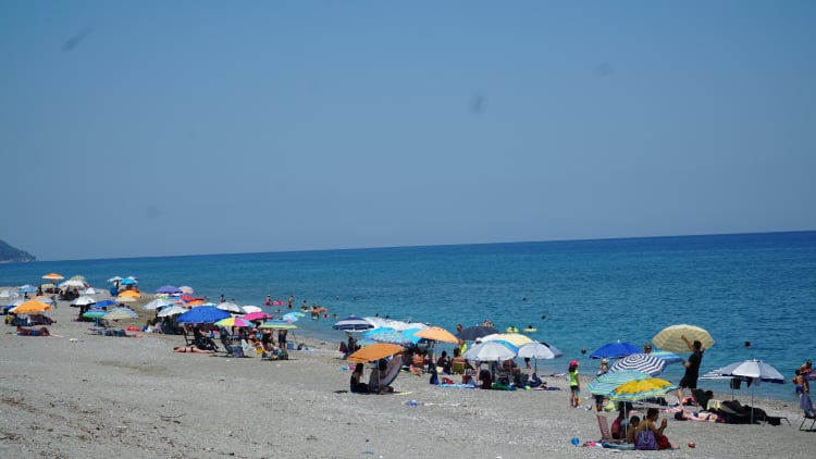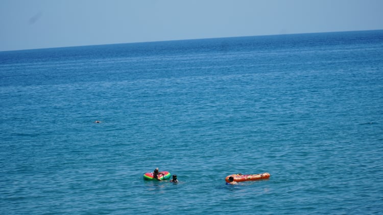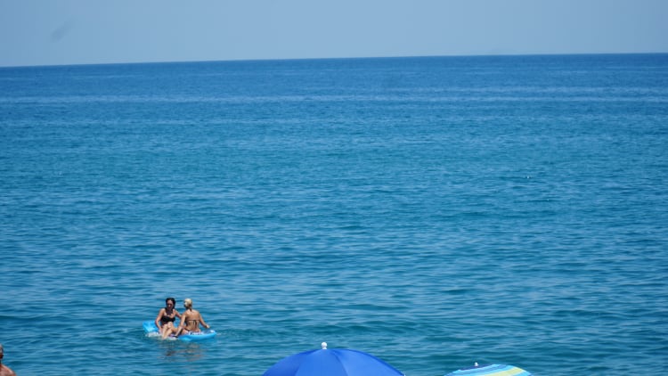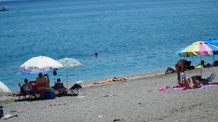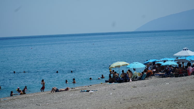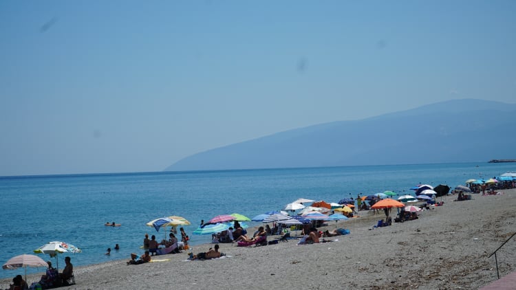 Βλέποντας την ζέστη οι Λαρισαίοι ξεχύθηκαν στα παράλια της Λάρισας για να κάνουν μπάνιο και να δροσιστούν. Απολαμβάνουν την καθαρή θάλασσα και τον ήλιο.