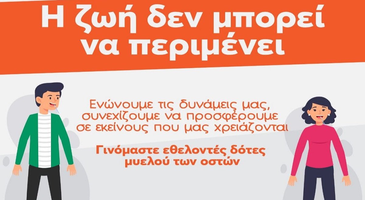 Σε συνέχεια της δράσης που ξεκινήσαμε πριν λίγους μήνες σε συνεργασία με τη Γραμματεία Ποιότητας Ζωής & Εθελοντισμού της Νέας Δημοκρατίας και τη Γραμματέα Πίστη Κρυσταλλίδου, αλλά και με αφορμή την Παγκόσμια Ημέρα Εθελοντή Δότη Μυελού των Οστών, το Σάββατο 19 Σεπτεμβρίου, καλούμε όλα τα μέλη μας και όλους τους νέους ανθρώπους να γίνουν εθελοντές δότες μυελού. Έπειτα από μια μεγάλη εκστρατεία ενημέρωσης, ευαισθητοποίησης αλλά και συλλογής δειγμάτων συνεχίζουμε αυτή την προσπάθεια προσαρμοζόμενοι βέβαια στις νέες υγειονομικές συνθήκες. Η πανδημία του κορωνοϊού σίγουρα μας έχει υποχρεώσει όλους σε αλλαγές και προσαρμογές, όμως η ανάγκη για μυελό δε σταματά να είναι υπαρκτή, ούτε βέβαια και η δυνατότητά μας να προσφέρουμε. Γινόμαστε δότες μυελού των οστών για να χαρίσουμε ζωή σε χιλιάδες συνανθρώπους μας που το έχουν ανάγκη, προσφέροντας ελάχιστο από το χρόνο μας. Με αυτόν τον τρόπο θα συμβάλουμε και εμείς στο να αυξηθεί σημαντικά το ποσοστό των ασθενών που θα καταφέρουν να βρουν συμβατό δότη μυελού των οστών. Ο Πρόεδρος της ΟΝΝΕΔ Παύλος Μαρινάκης έκανε την ακόλουθη δήλωση: «Όλοι μας οφείλουμε να προσαρμοστούμε στις νέες συνθήκες, δεν σταματάμε, όμως, να προσφέρουμε στους συνανθρώπους μας που το έχουν ανάγκη. Καλούμε όλα τα μέλη μας, καθώς και κάθε νέα και νέο να γίνουν εθελοντές δότες μυελού των οστών κάνοντας πράξη την υπέρτατη προσφορά, γιατί η ζωή δεν μπορεί να περιμένει».