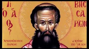 “Χαίροις Βησσαρίων Πάτερ σοφέ, Πρόεδρε Λαρίσης και Οσίων ο μιμητής. Χαίροις Βησσαρίων συνώνυμε του πρώτου,