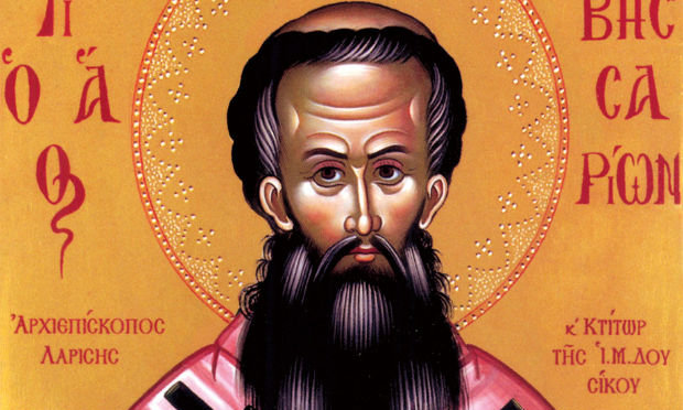 ΒΙΟΓΡΑΦΙΑ: Πατρίδα του Αγίου Βησσαρίωνα [Β΄] υπήρξε ο οικισμός της Μεγάλης Πόρτας (Μεγάλες Πύλες) στα όρια της σημερινής Πύλης των Τρικάλων. Οι γονείς του, που ήταν ευσεβείς Χριστιανοί, ανέθρεψαν το γιο τους “εν παιδεία και νουθεσία Κυρίου”. Από την πρώτη παιδική ηλικία ο μικρός Βησσαρίων μάθαινε τα ιερά γράμματα (κοινά) από δασκάλους-ιερωμένους της ιδιαίτερής του πατρίδας. Από την ηλικία των 10-12 ετών είχε αποβάλλει από την καρδιά του κάθε ενδιαφέρον για πλούτο, δόξα, γάμο, κ. α. Θέλησε μάλιστα από πολύ μικρός να ακολουθήσει τον αγγελικό βίο των μοναχών. Έτσι αγαπημένα του αναγνώσματα ήταν τα βιβλία των βίων των Αγίων και των Πατέρων της Εκκλησίας. Ενώ ήταν ακόμα νέος, εγκατέλειψε το πατρικό σπίτι του και προσκολλήθηκε στον Άγιο Μητροπολίτη Λάρισας Μάρκο2 στα Τρίκαλα. Από τότε έμενε στο Γέροντα αυτό για πολλά έτη τηρώντας μεγάλη υπακοή και τέλεια υποταγή. Όταν, μετά από μερικά έτη, χήρεψε η θέση της Επισκοπής Ελασσόνας και Δομενίκου, ο Μητροπολίτης Λαρίσης μαζί με το σύνολο των επισκόπων της Θεσσαλίας ψήφισαν τον Βησσαρίωνα επίσκοπό της. Όμως εκεί δεν έγινε δεκτός και σε λίγα χρόνια αναγκαστήκαμε να αποχωρήσει. Οι δύο λόγοι που δεν έγινε δεκτός ο Άγιος ήταν πρώτα ο φθόνος κάποιων Χριστιανών προς το πρόσωπό του και έπειτα η απαίτηση των κατοίκων της Ελασσόνας να μην υποτάσσεται η επισκοπή τους στη Μητρόπολη Λαρίσης αλλά απευθείας στο Οικουμενικό Πατριαρχείο. Έτσι ο πατριάρχης της Κων/λης Θεόληπτος (1513-22), τοποθέτησε αντί του Αγίου κάποιον Νεόφυτο (1516-38). Αξίζει εδώ να σημειωθεί ότι έκτοτε ο επίσκοπος της Ελασσόνας οριζόταν πάντα από τον Οικουμ. Πατριάρχη μέχρι και την ανακήρυξη του Αυτοκεφάλου της Εκκλησίας της Ελλάδος. Ο Άγιος Βησσαρίων, χωρίς να λυπηθεί για την έξωσή του από τον επισκοπικό θρόνο, επέστρεψε στα Τρίκαλα κοντά στον πνευματικό του πατέρα. Συνέχισε μάλιστα να υπηρετεί σαν ο ταπεινότερος των δούλων με ευλάβεια και τον Γέροντά του και τους φτωχούς ή ξένους που προσέτρεχαν για βοήθεια στη Μητρόπολη. Γύρω στο 1520 εκοιμήθη ο επίσκοπος Σταγών Νικάνωρ και ο λαός της Επισκοπής ζήτησε τον Άγιο Βησσαρίωνα για τη διαποίμανσή του. Στους Σταγούς (Καλαμπάκα) λοιπόν ο Άγιος διετέλεσε επίσκοπος, επιτροπικά, για έξι έτη. Όταν ο πνευματικός του πατέρας, μητροπ. Μάρκος, αναχώρησε για τις “άνω μονές”, ο Βησσαρίων τοποθετήθηκε μητροπολίτης Λαρίσης με απόφαση του Πατριάρχη Ιερεμία Α΄(1522-46). Ο βίος του Αγίου μητροπ. Λαρίσης Βησσαρίωνα ήταν από και πέρα οσιακός. Ήταν η “φιλότεκνος μήτηρ ομού και φιλόστοργος, αγκαλιζόμενη όλους, τρέφουσα όλους, προνοούσα δι΄ όλους3 …”. Εκτός από το πνευματικό του έργο, ο Άγιος έγινε γνωστός για τα έργα κοινής ωφέλειας που με μέριμνά του έγιναν σε πολλές περιοχές της επαρχίας του. Φημισμένα είναι τα γεφύρια, που με δαπάνες και φροντίδες του κατασκευάστηκαν, τα οποία έζωναν τις όχθες των ορμητικών ποταμών της Δυτ. Θεσσαλίας.