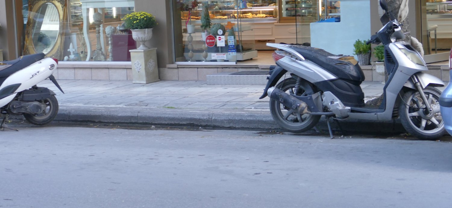 Μια πιο εξελιγμένη μορφή αυτής της κακής συνήθειας παρατηρείται σε κεντρικά σημεία της Λάρισας, όπου καταστηματάρχες παρατάσσουν μηχανάκια – ενίοτε σχεδόν διαλυμένα και μερικές φορές χωρίς πινακίδες κυκλοφορίας – ώστε να κρατούν θέσεις στάθμευσης μπροστά από την επιχείρηση για «ιδία χρήση».