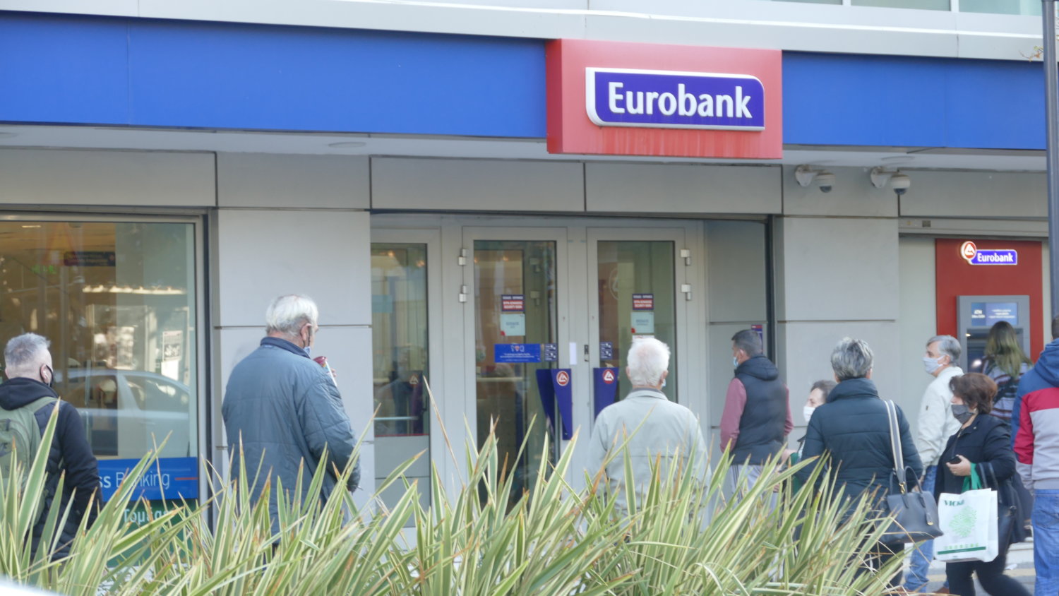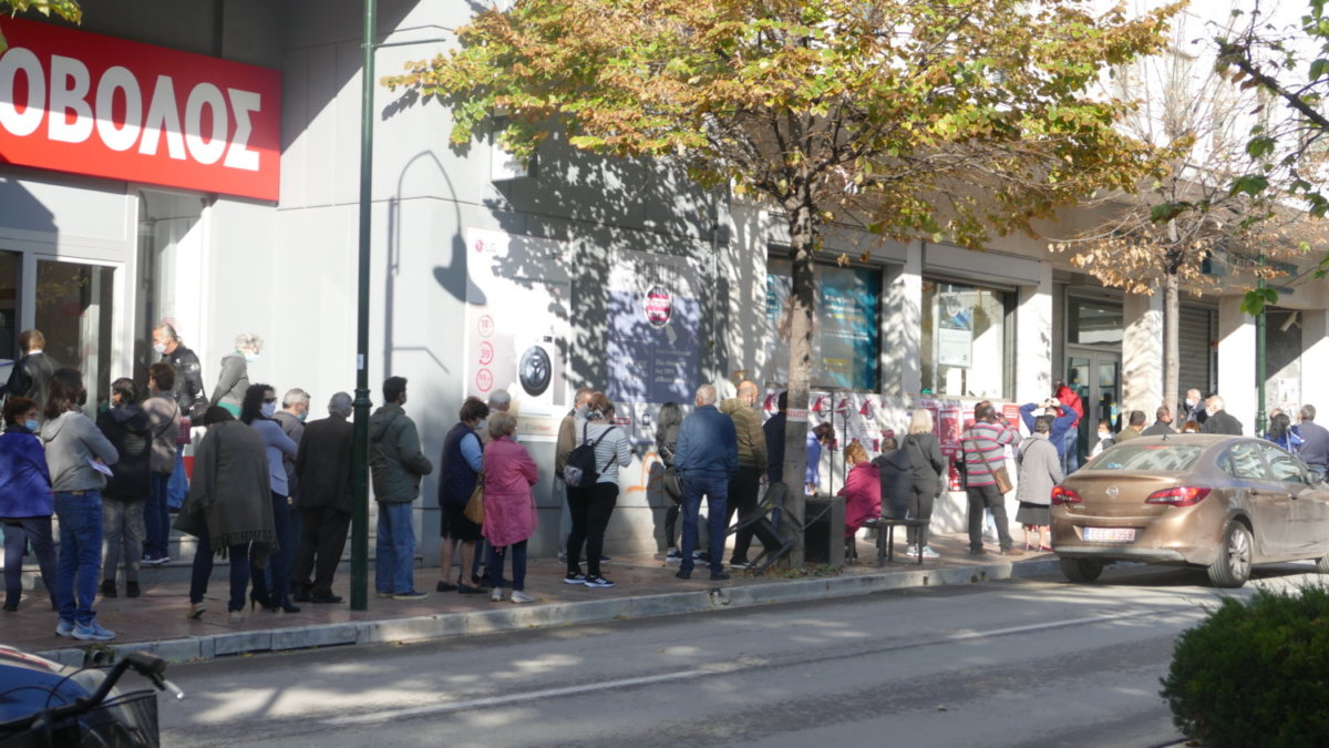 Ουρές πολλών μέτρων σχηματίζονται από νωρίς το πρωί της Πέμπτης έξω από τα κεντρικά υποκαταστήματα των τραπεζών στη Λάρισα.
