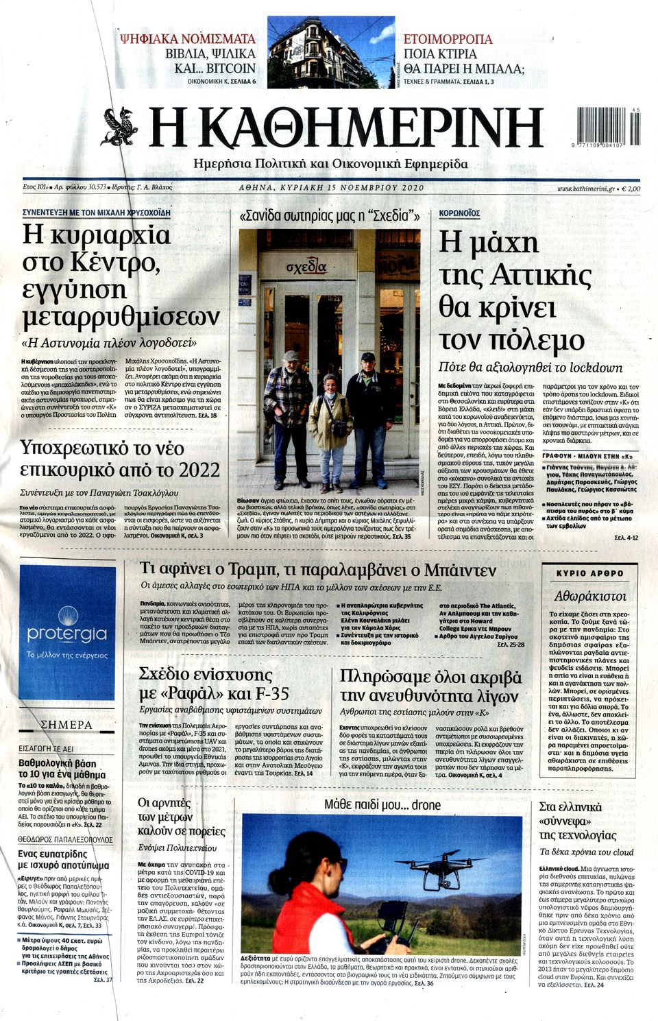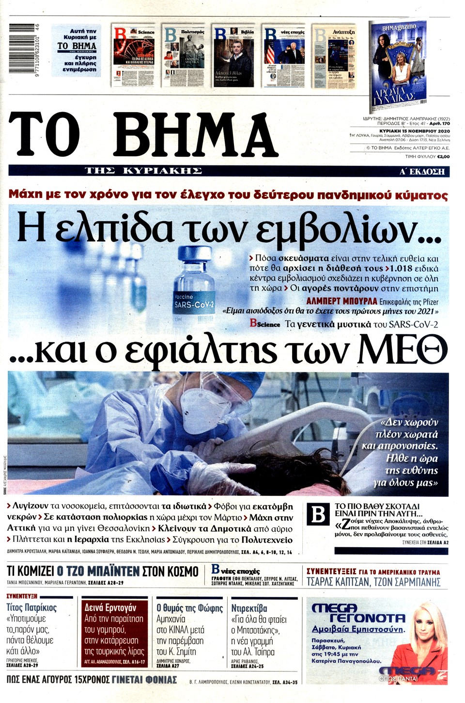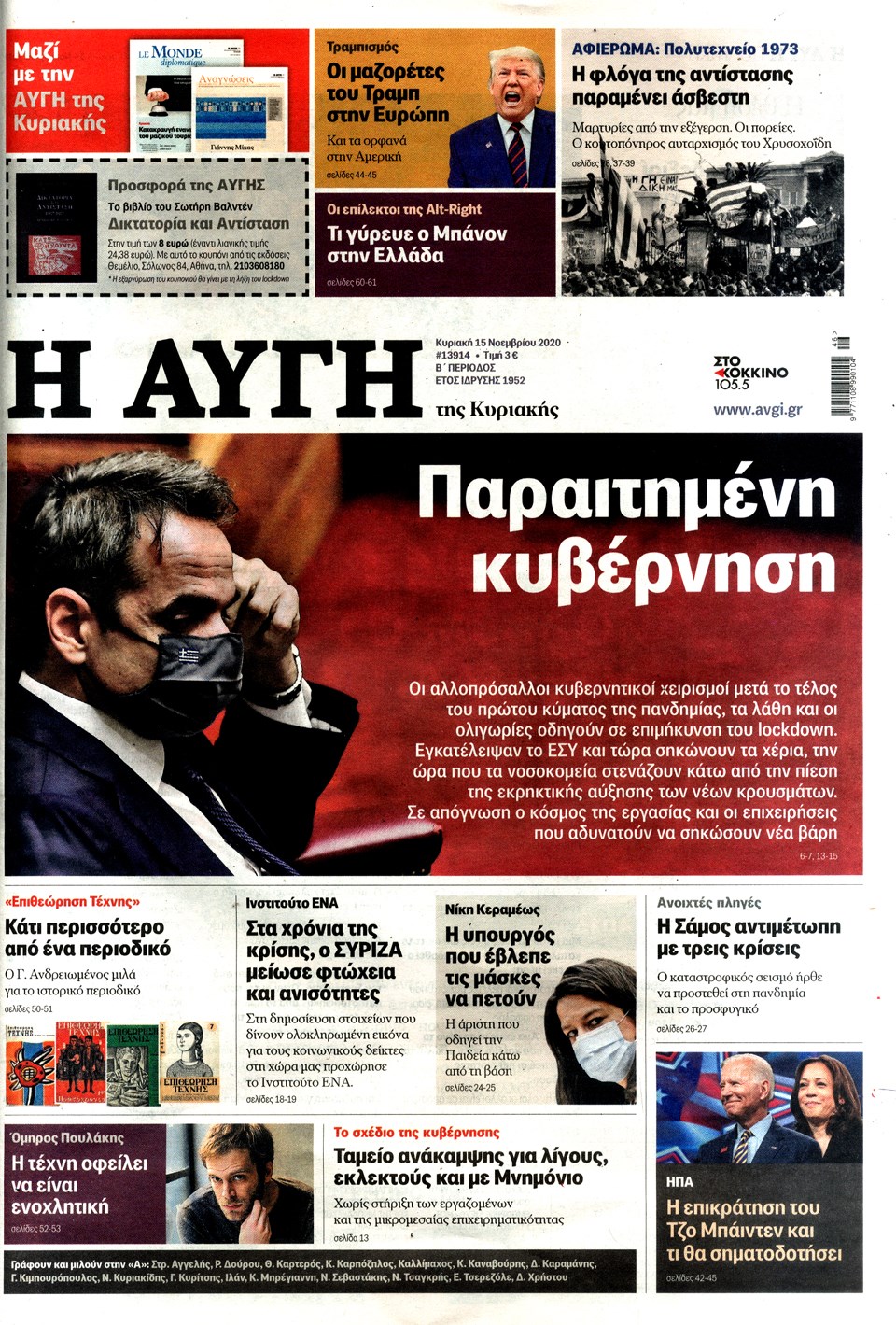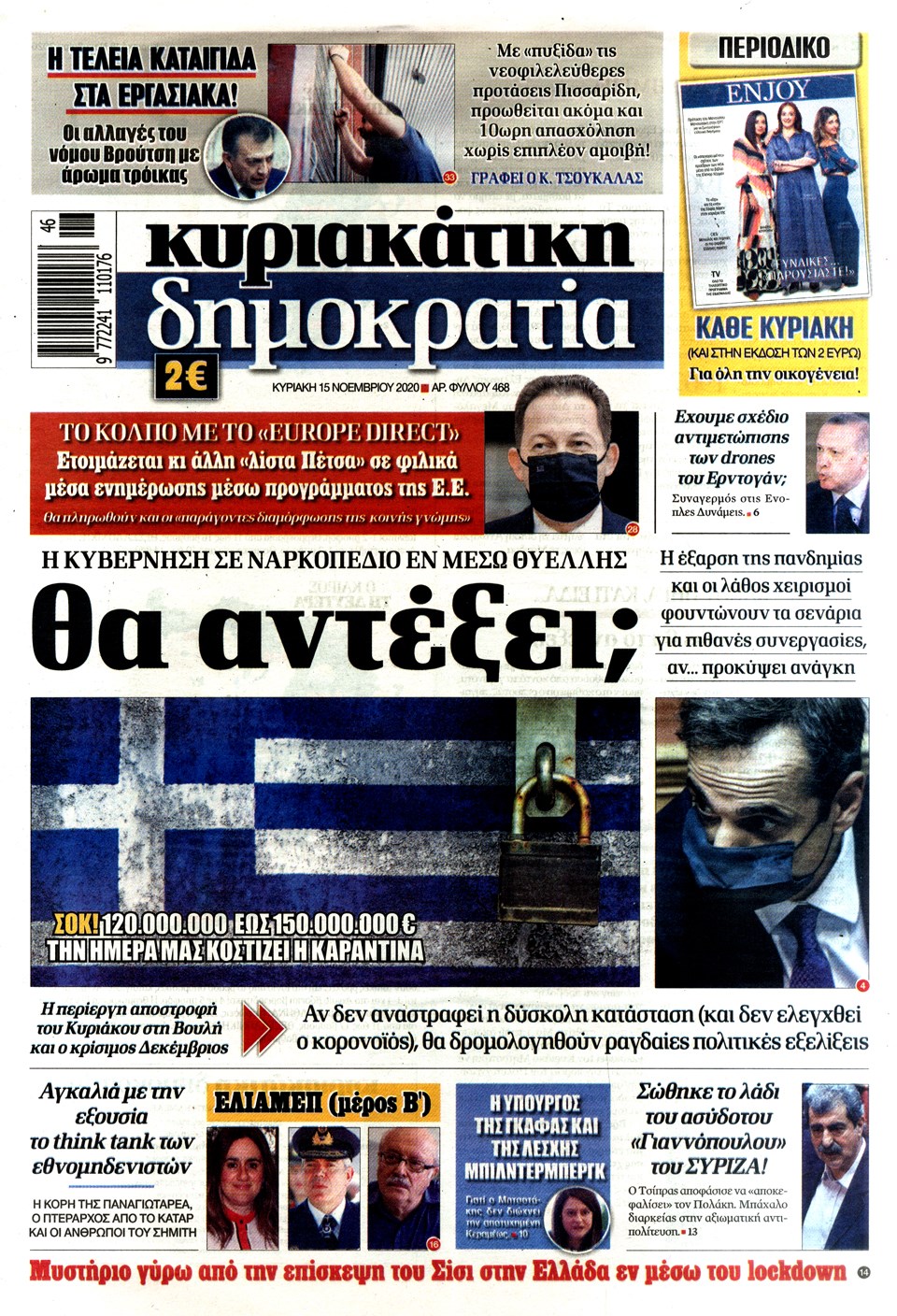 Δείτε πώς καταγράφεται η επικαιρότητα μέσα από τις σελίδες των κυριακάτικων εφημερίδων της 15ης Νοεμβρίου 2020.