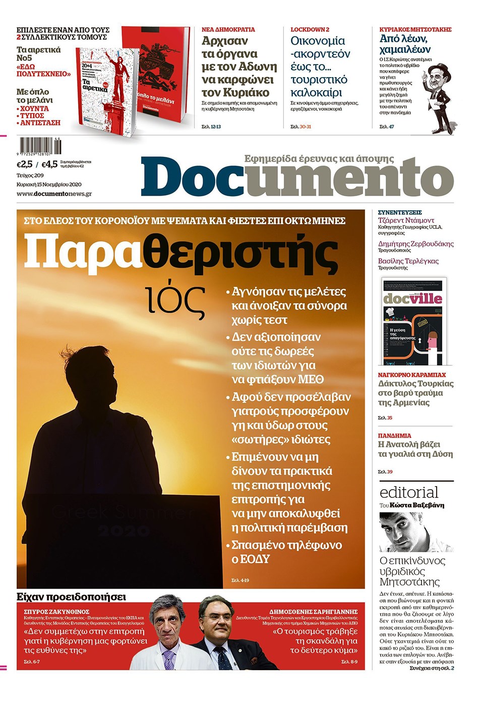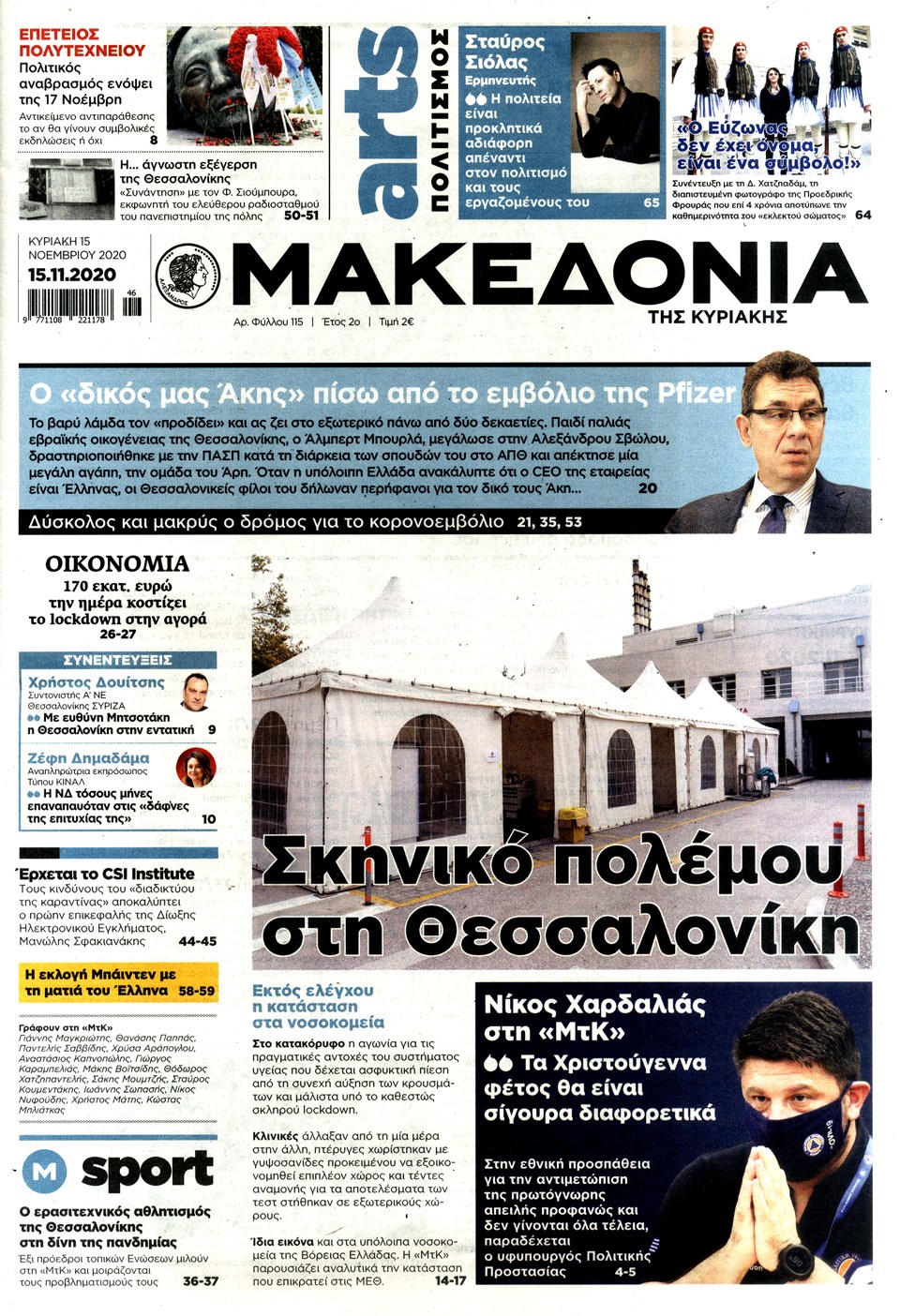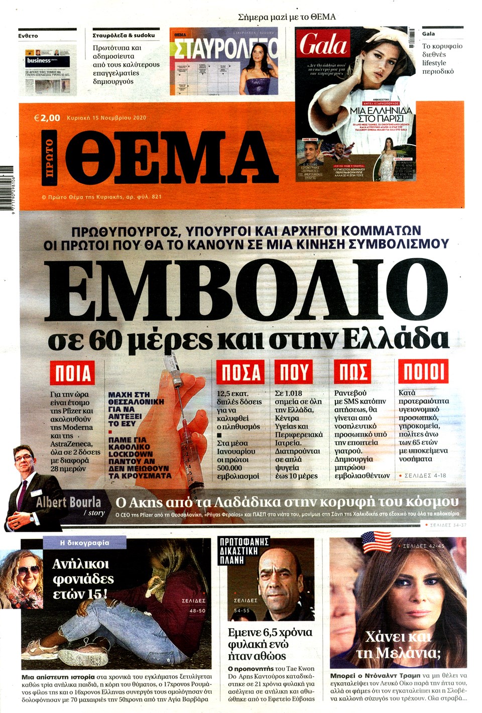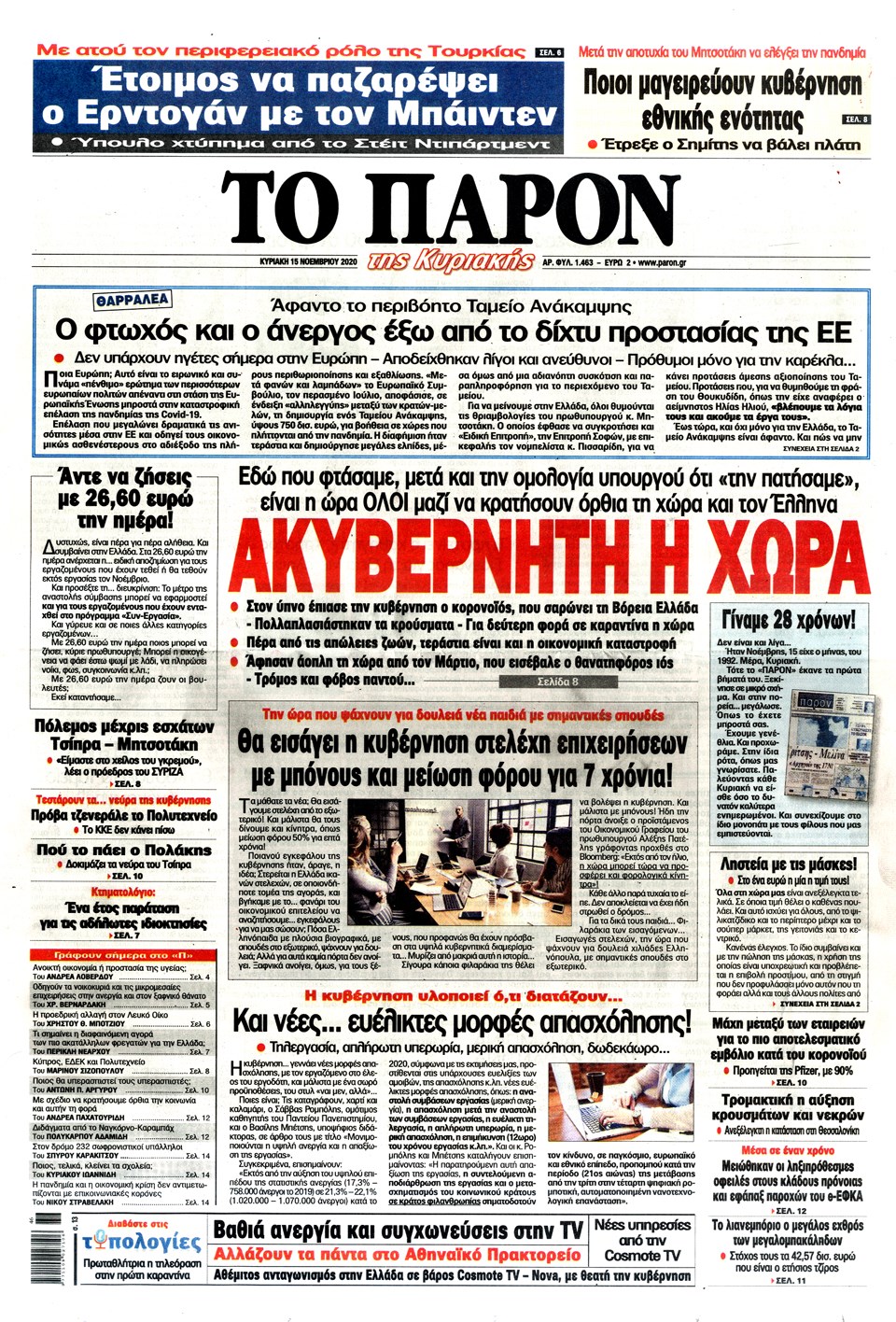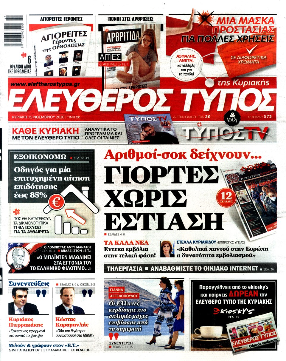 Δείτε πώς καταγράφεται η επικαιρότητα μέσα από τις σελίδες των κυριακάτικων εφημερίδων της 15ης Νοεμβρίου 2020.