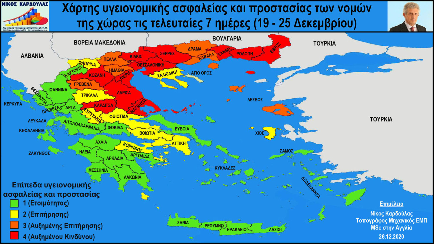 Χάρτης και επίπεδα υγειονομικής ασφαλείας των νομών στις 25.12.2020