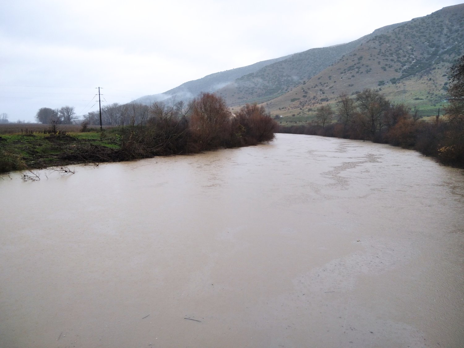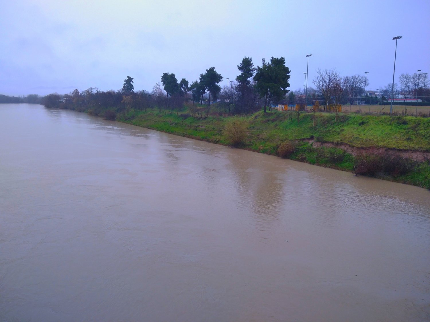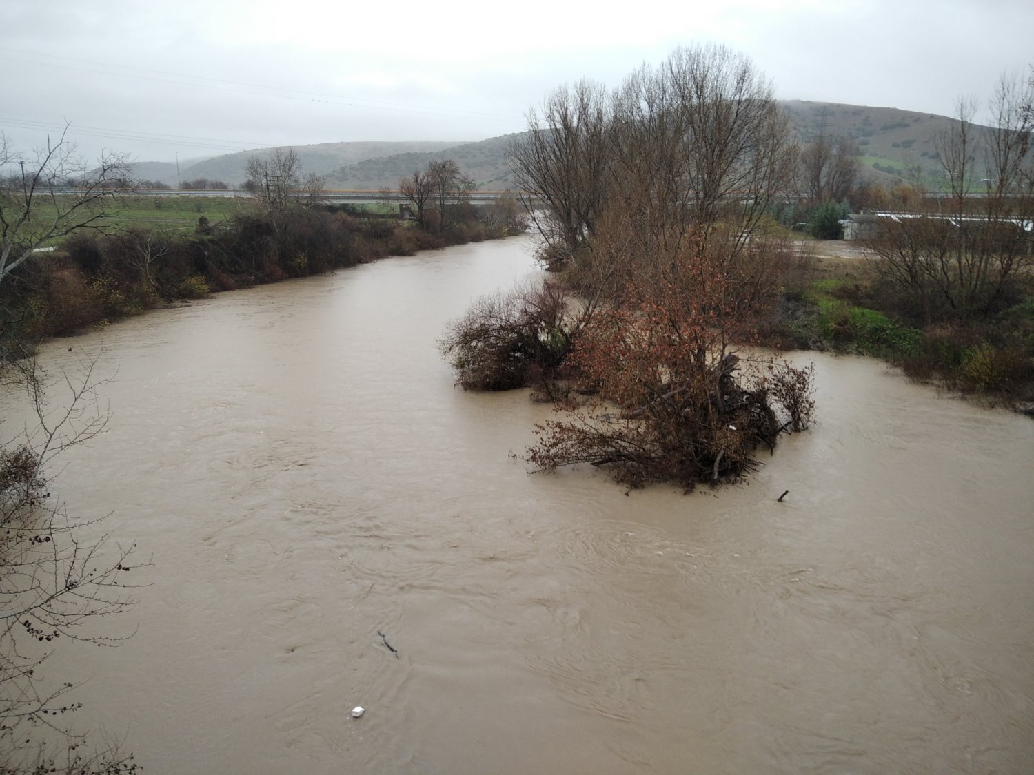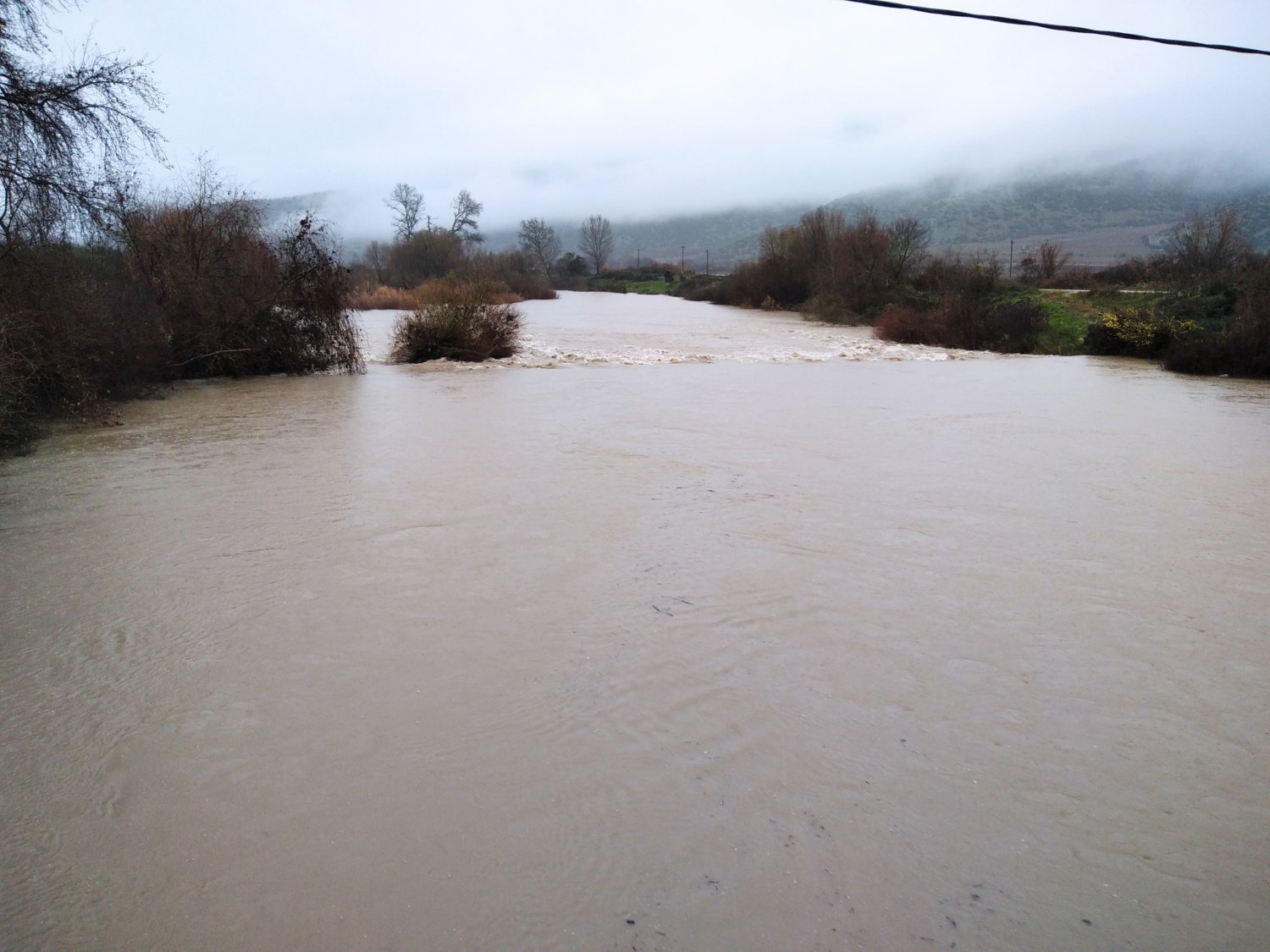 Οι ισχυρές βροχοπτώσεις των τελευταίων ωρών έχουν «φουσκώσει» τον Πηνειό σε αρκετά σημεία της Π.Ε. Λάρισας.