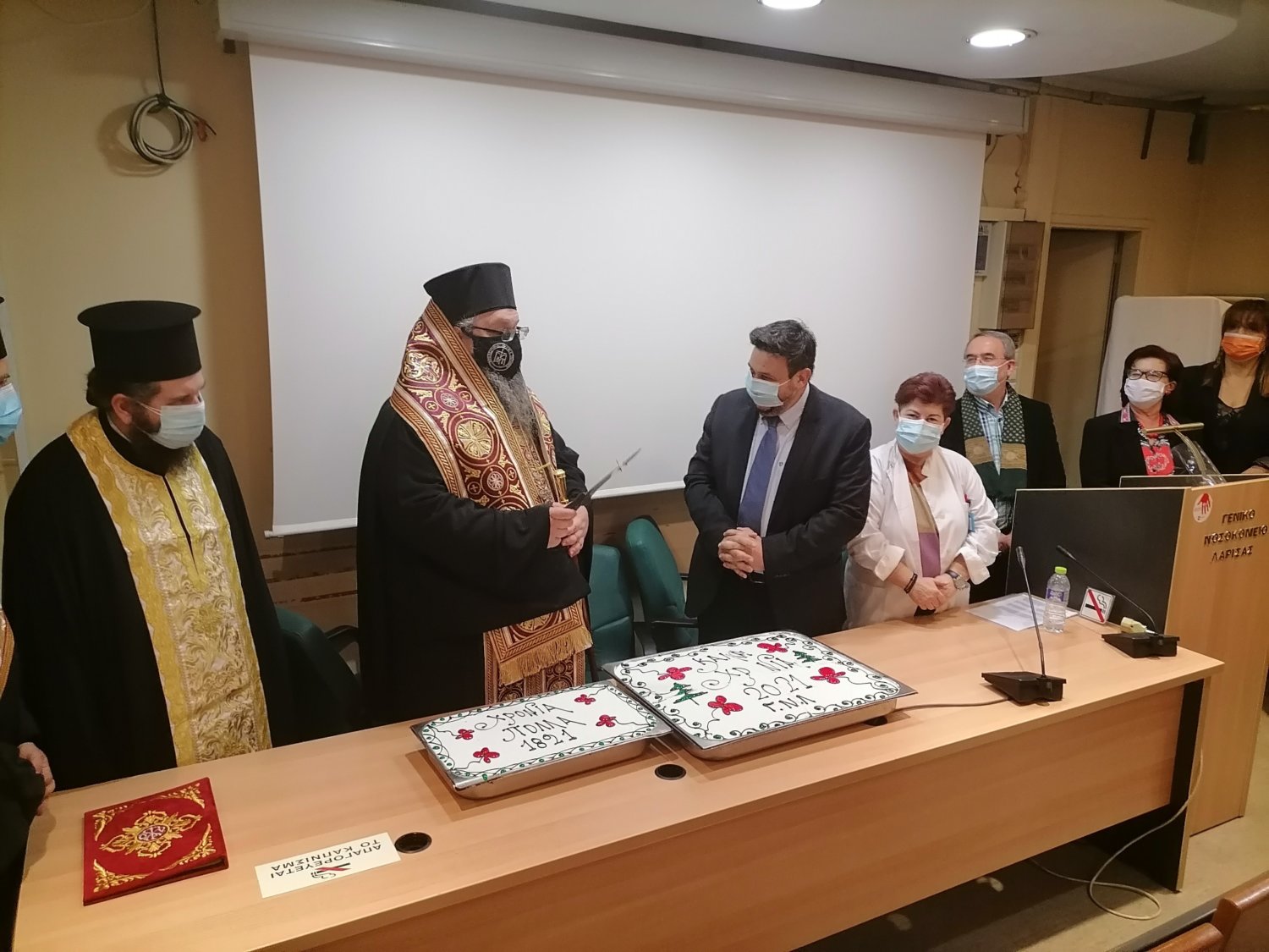 Παρουσία του Σεβασμιωτάτου Μητροπολίτη Λαρίσης και Τυρνάβου κ.κ. Ιερώνυμου, του Διοικητή κ. Γρηγορίου Βλαχάκη και των εργαζομένων πραγματοποιήθηκε την Δευτέρα 11/01/2021 η κοπή βασιλόπιτας στο Αμφιθέατρο του Γ.Ν. Λάρισας.