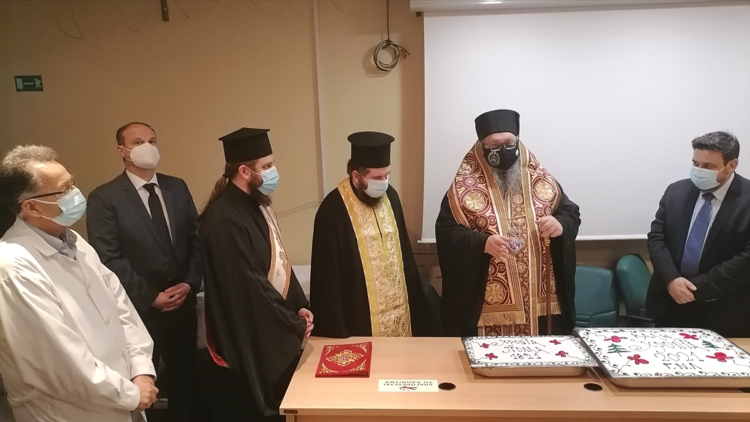 Ο Μητροπολίτης Ιερώνυμος ευλόγησε και έκοψε την βασιλόπιτα και απηύθυνε τις ευχαριστίες του στην Διοίκηση και στο προσωπικό του Νοσοκομείου, ως ένδειξη σεβασμού στο ρόλο και στο έργο τους στην δραματική αυτή συγκυρία της πανδημίας.