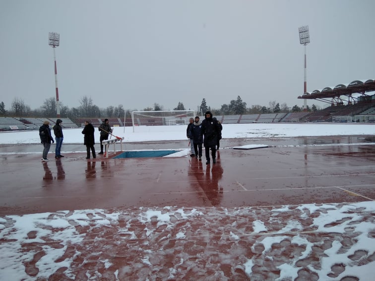 Οι πρώτες εργασίες καθαρισμού του γηπέδου Αλκαζάρ από το χιόνι ξεκίνησαν αυτήν την ώρα.