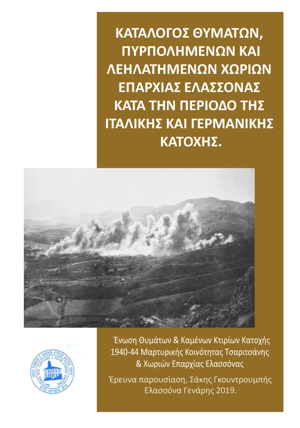 Πρώτον, για να προσθέσουμε τα ονόματα θυμάτων, καμένων χωριών και άλλων ιστορικών στοιχείων που η πρώτη καταγραφή από την «Εθνική Αλληλεγγύη» τον Δεκέμβρη του 1944, (όταν τα αποκαΐδια των χωριών ακόμα κάπνιζαν), δεν συμπεριέλαβε στις καταστάσεις της. Όπως τα ονόματα των τριών ανήλικων παιδιών της δολοφονημένης Αννέτας Τσανούσα από το Λιβάδι, των δέκα άμαχων της Γεράνειας, των θυμάτων της Ελασσόνας, της Μηλέας και άλλων. Αλλά και να υπενθυμίσουμε ότι αυτός ο κατάλογος ήταν και θα παραμείνει ανοικτός, γιατί όπως μας πληροφορούν οι συμπατριώτες μας από τη Σκαμνιά, εκτός από τα καταγεγραμμένα θύματα, το 1943 από τις κακές συνθήκες διαβίωσης, την πείνα και τις αρρώστιες, πέθαναν περίπου 100 συγχωριανοί τους. Το ίδιο συνέβη στην Άζωρο και σε άλλα χωριά.