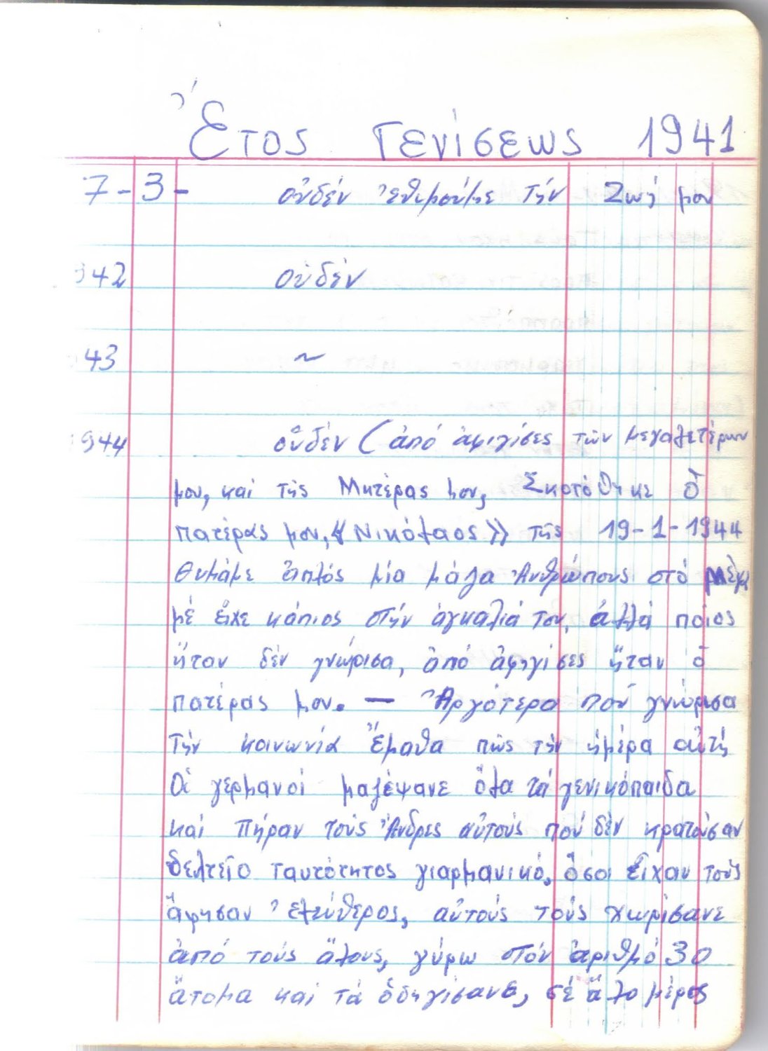 «Εν περιλήψει του βίου μου. Έτος Γεννήσεως 1941.