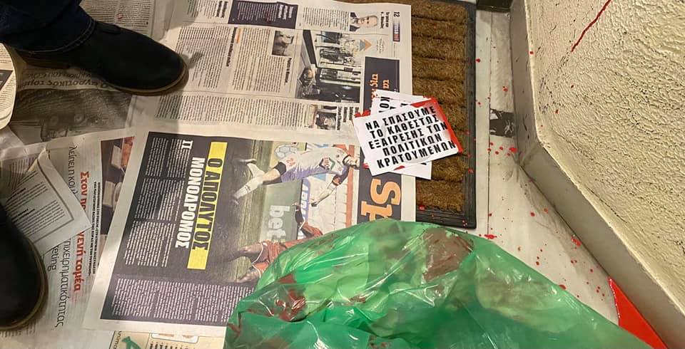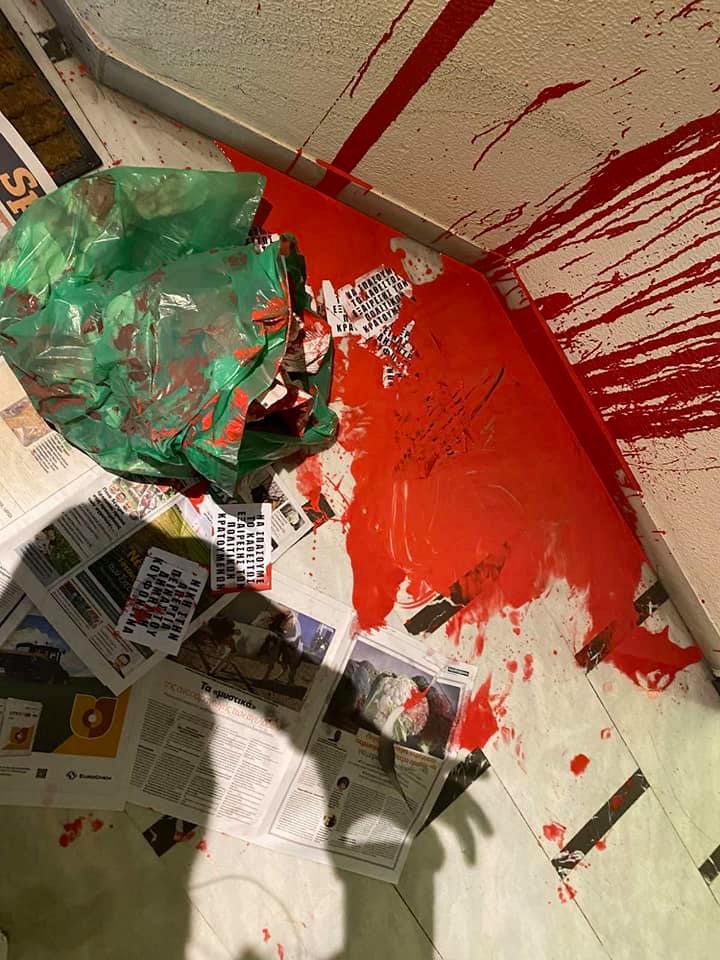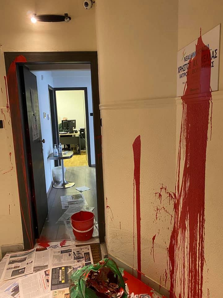 Άγνωστοι στην είσοδο του γραφείου, πέρα από τις μπογιές, πέταξαν και τρικάκια.