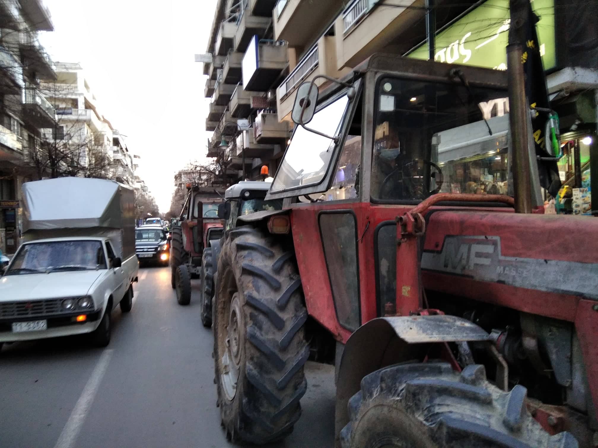 Μπροστά από την Περιφέρεια Θεσσαλίας βρίσκονται πλέον οι αγρότες με τα τρακτέρ τους.