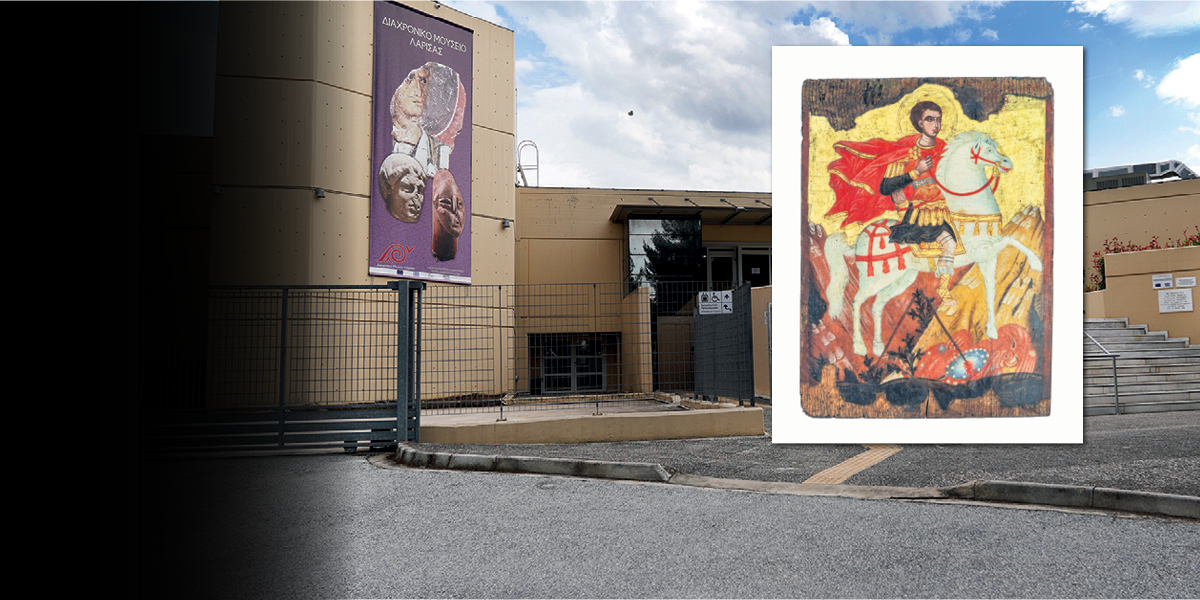 Η συμβολή του Διαχρονικού Μουσείου Λάρισας στην έκθεση αυτή θα είναι μια μικρή εικόνα του Αγίου Γεωργίου, διαστάσεων 33χ44 εκ., από τις Συλλογές του Μουσείου.