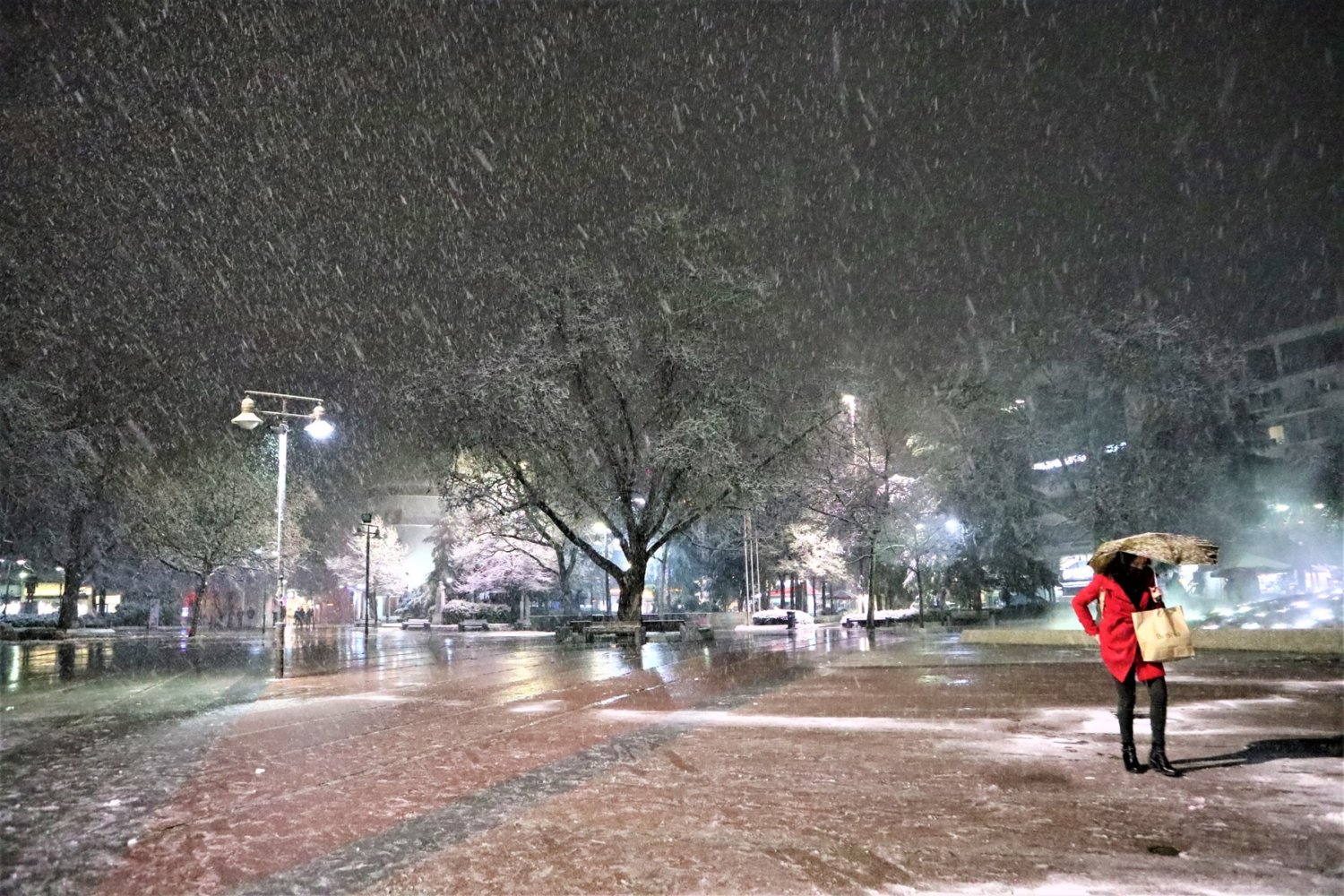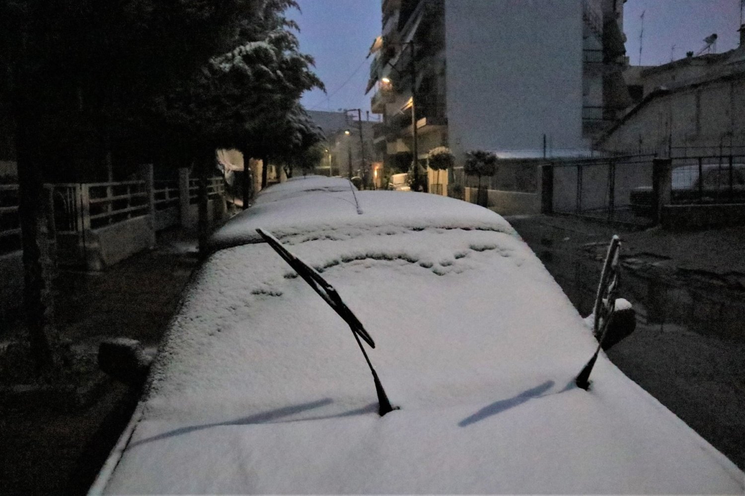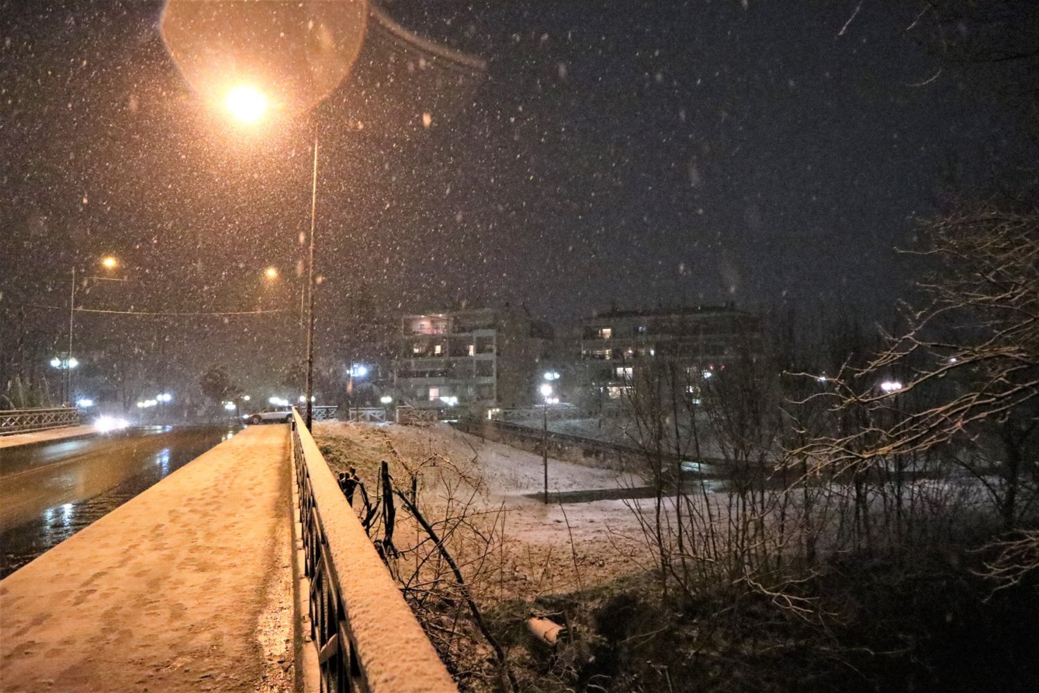 Συνεχίζεται η χιονόπτωση και εντός της πόλης της Λάρισας.