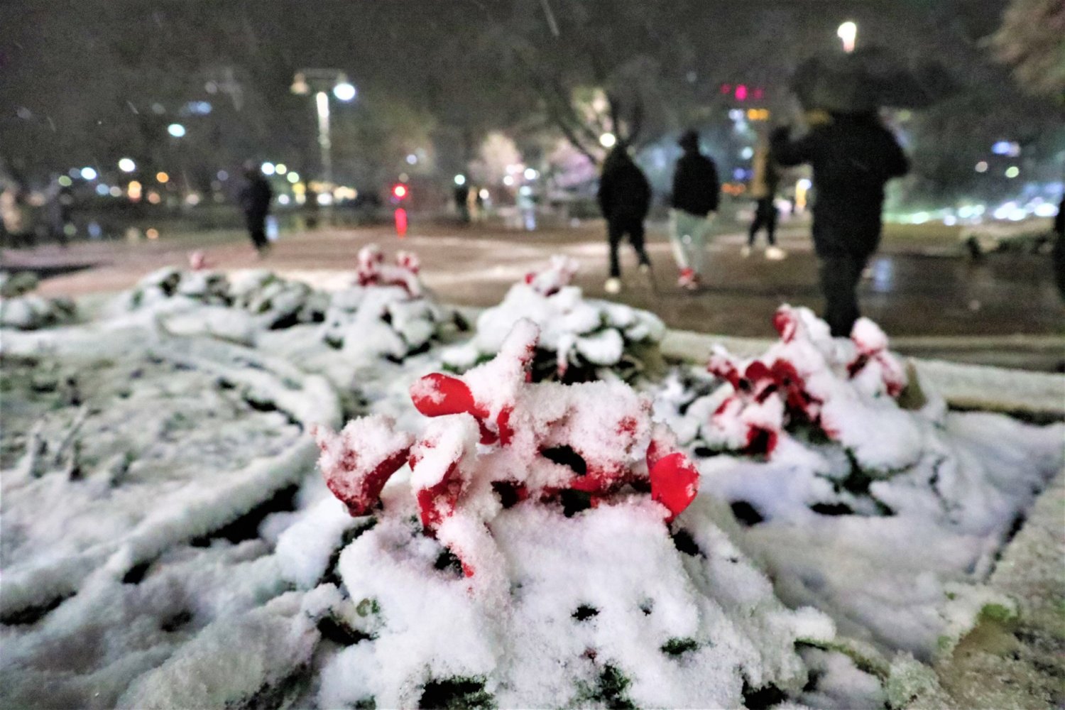 Η πολύωρη χιονόπτωση έχει δημιουργήσει ωραίες εικόνες στο τοπίο της πόλης.