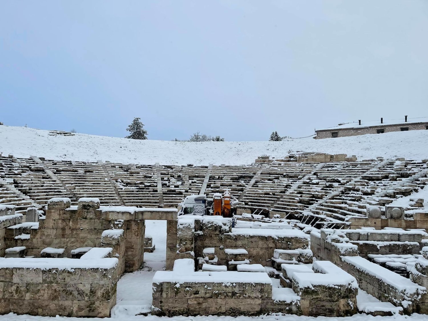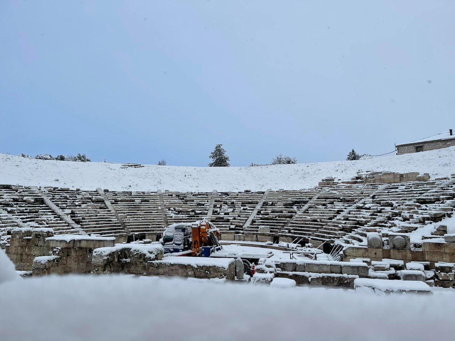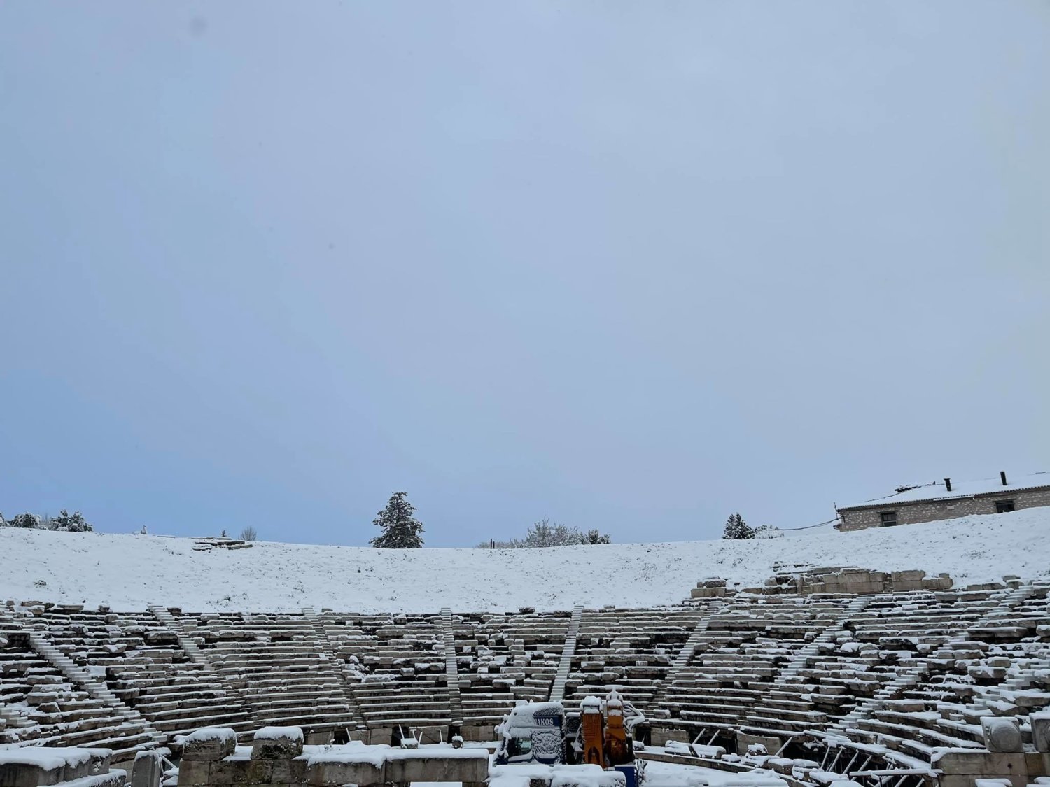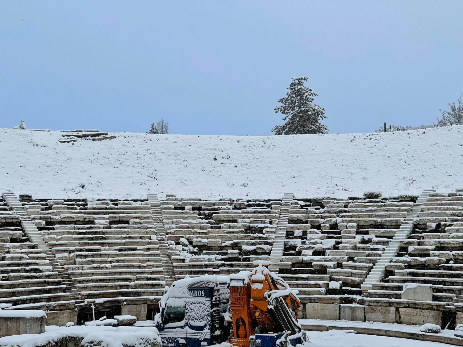 Εικόνες από το χιονισμένο Α’ Αρχαίο Θέατρο της Λάρισας