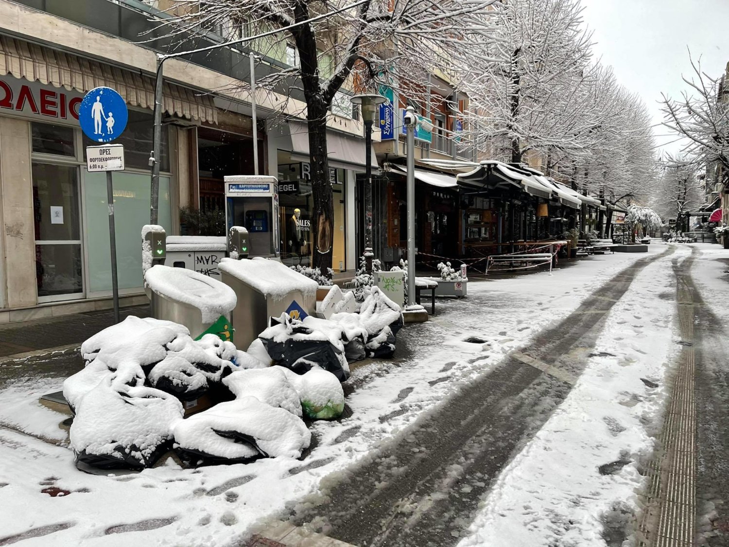 Πρωινή εικόνα από τους πεζόδρομους στα λευκά