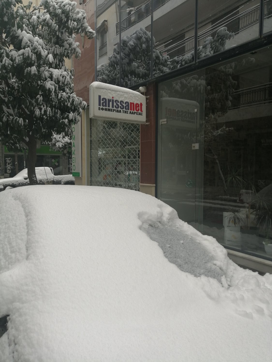 To ύψος του χιονιού μέσα στη Λάρισα είναι 5 – 10 cm, στα ημιορεινά φτάνει στα 15 cm και σε κατοικημένες περιοχές άνω των 1.000 μέτρων υψόμετρο, στα 20 cm. Τα εκχιονιστικά μηχανήματα βρίσκονται στους δρόμους για να παραμείνει ανοιχτό το οδικό δίκτυο.