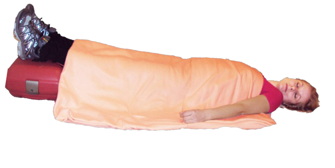 Τοποθετούμε το θύμα ανάσκελα με τα άκρα υψωμένα, και το σκεπάζουμε με ένα ελαφρύ κάλυμμα (όπως διακρίνεται στην φωτογραφία).
