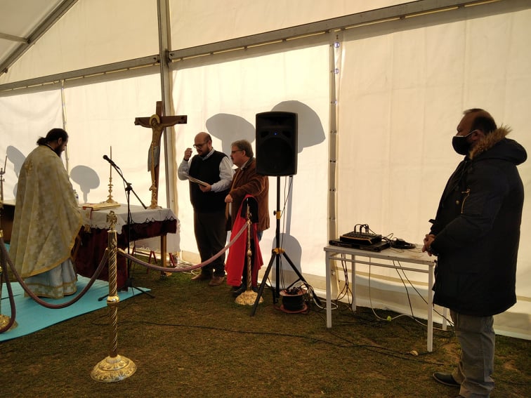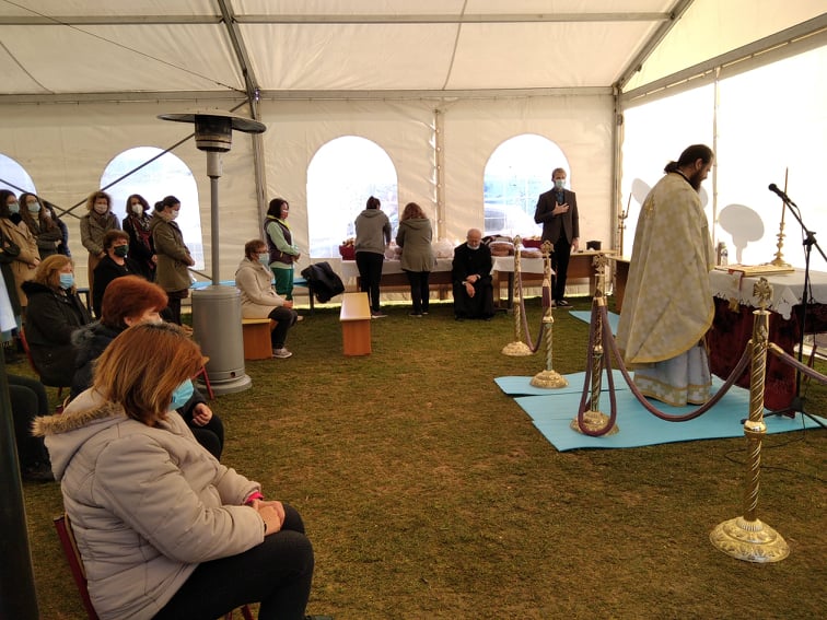 Στον Κυριακάτικο εκκλησιασμό μετά τους μεγάλους σεισμούς προχώρησαν οι κάτοικοι του Δαμασίου και του Μεσοχωρίου. Πρόκειται περί ιστορικής στιγμής καθώς για πρώτη φορά αυτό συμβαίνει σε σκηνές και τέντες παρουσία του Μητροπολίτη Ελασσόνα Σεβ. κ. Χαρίτωνα.