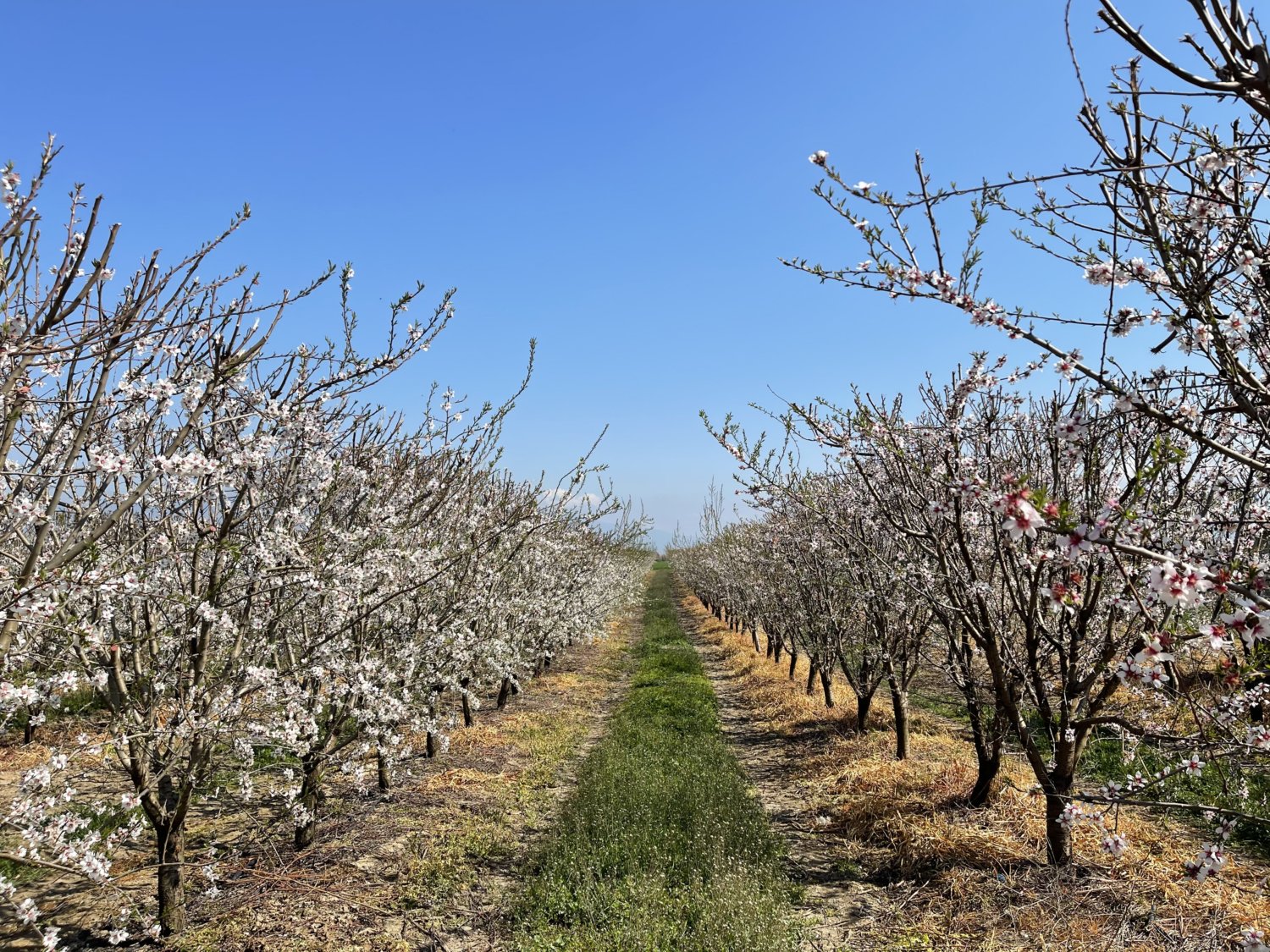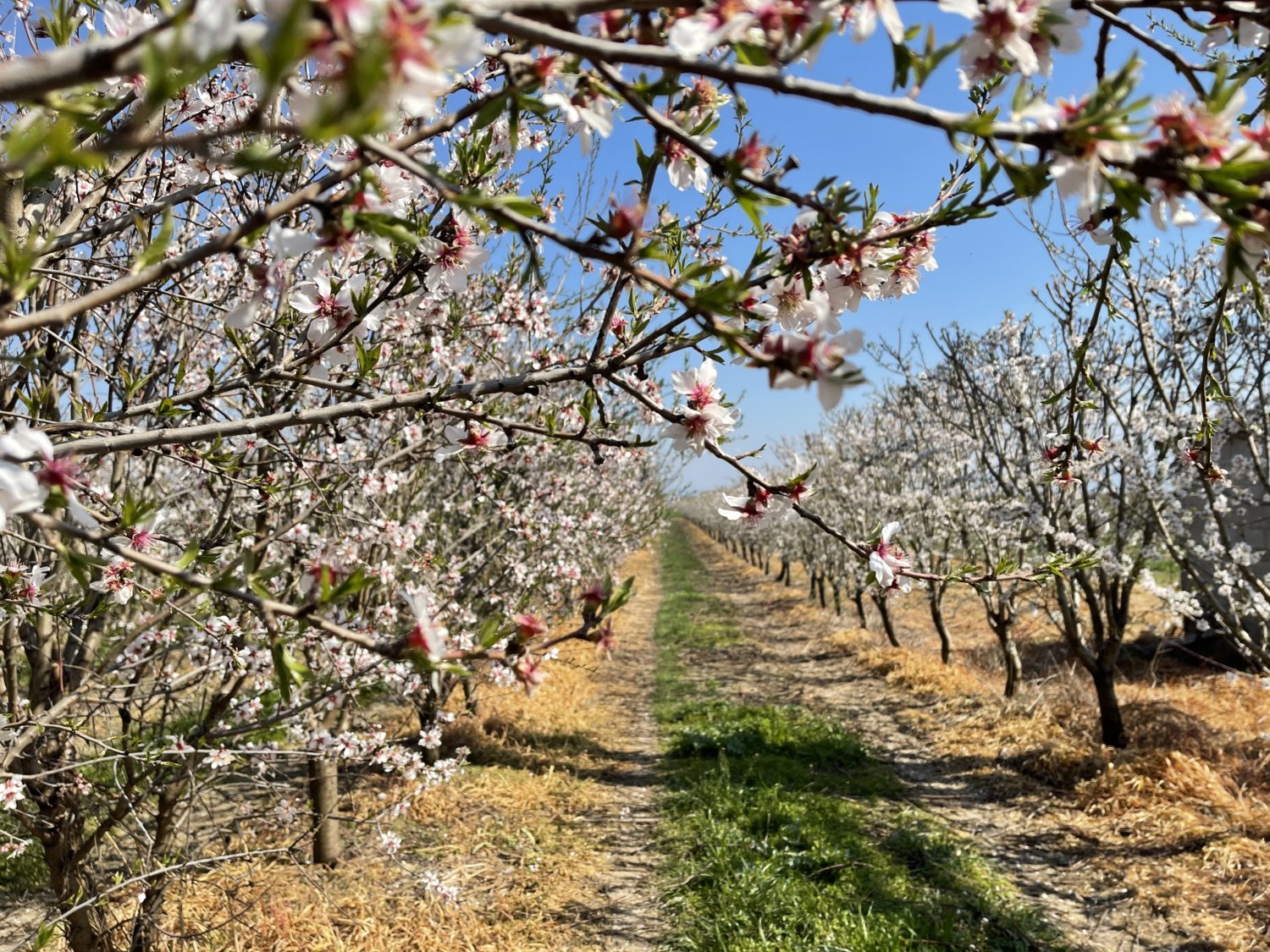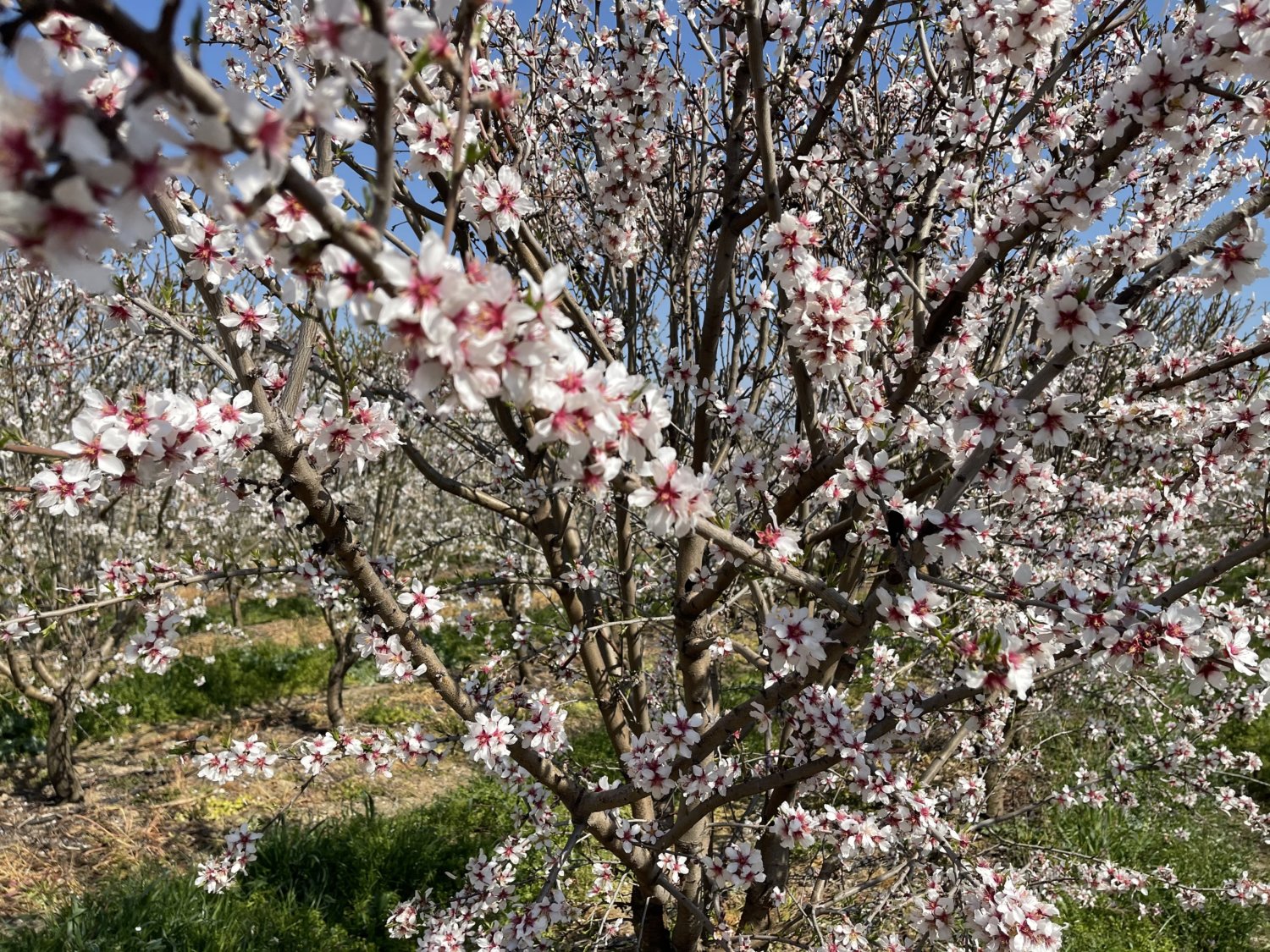 Δείτε εικόνες από την καλλιέργεια υπέπυκνης φύτευσης αμυγδαλιάς στην ανθοφορία της.