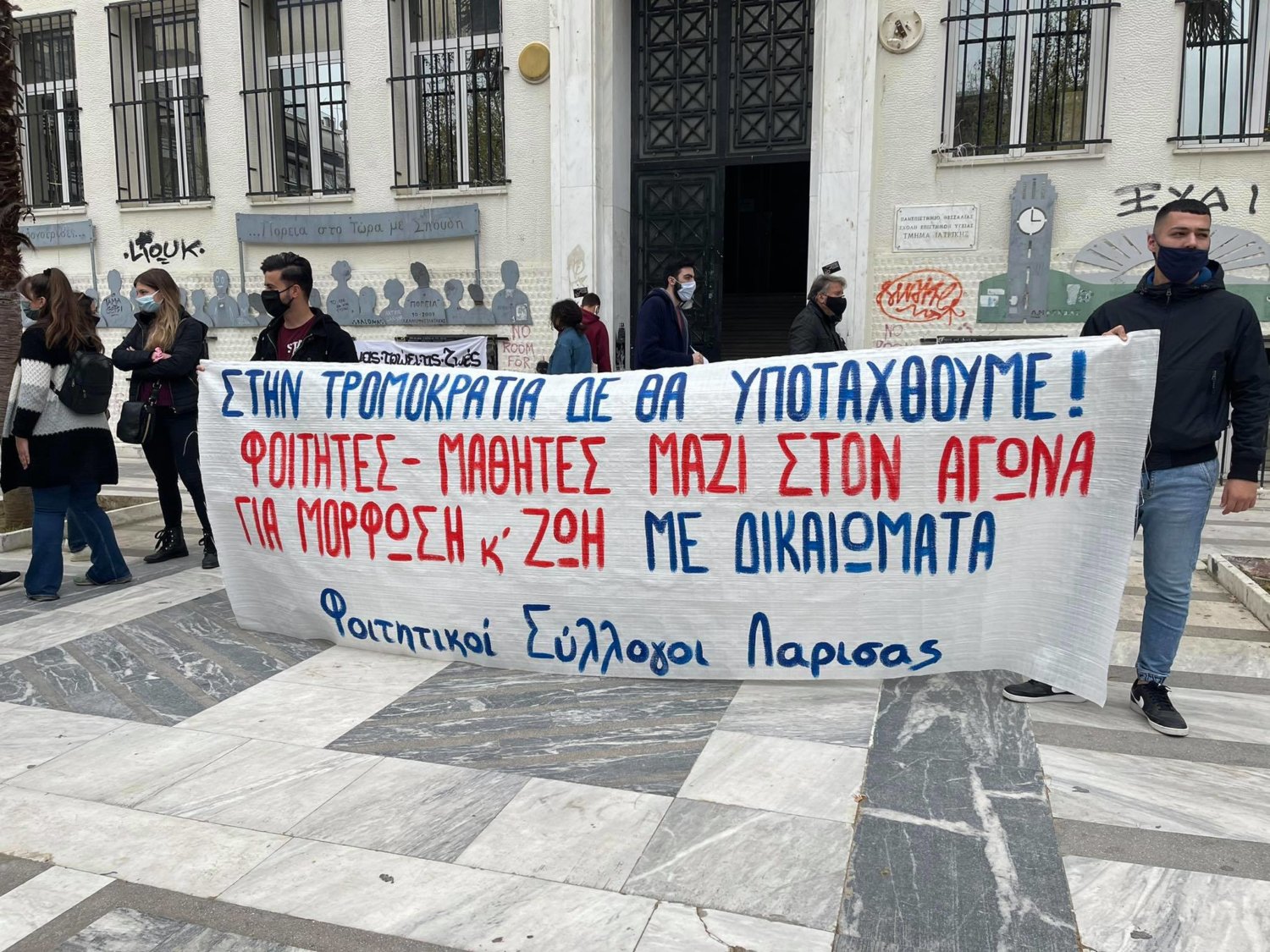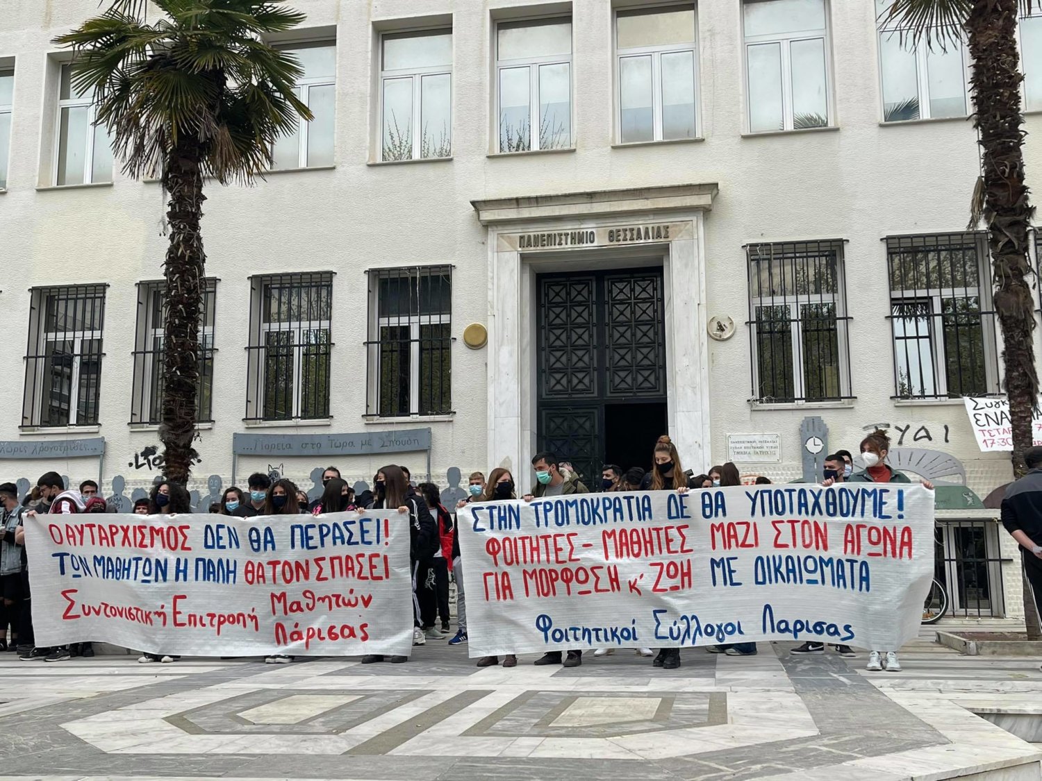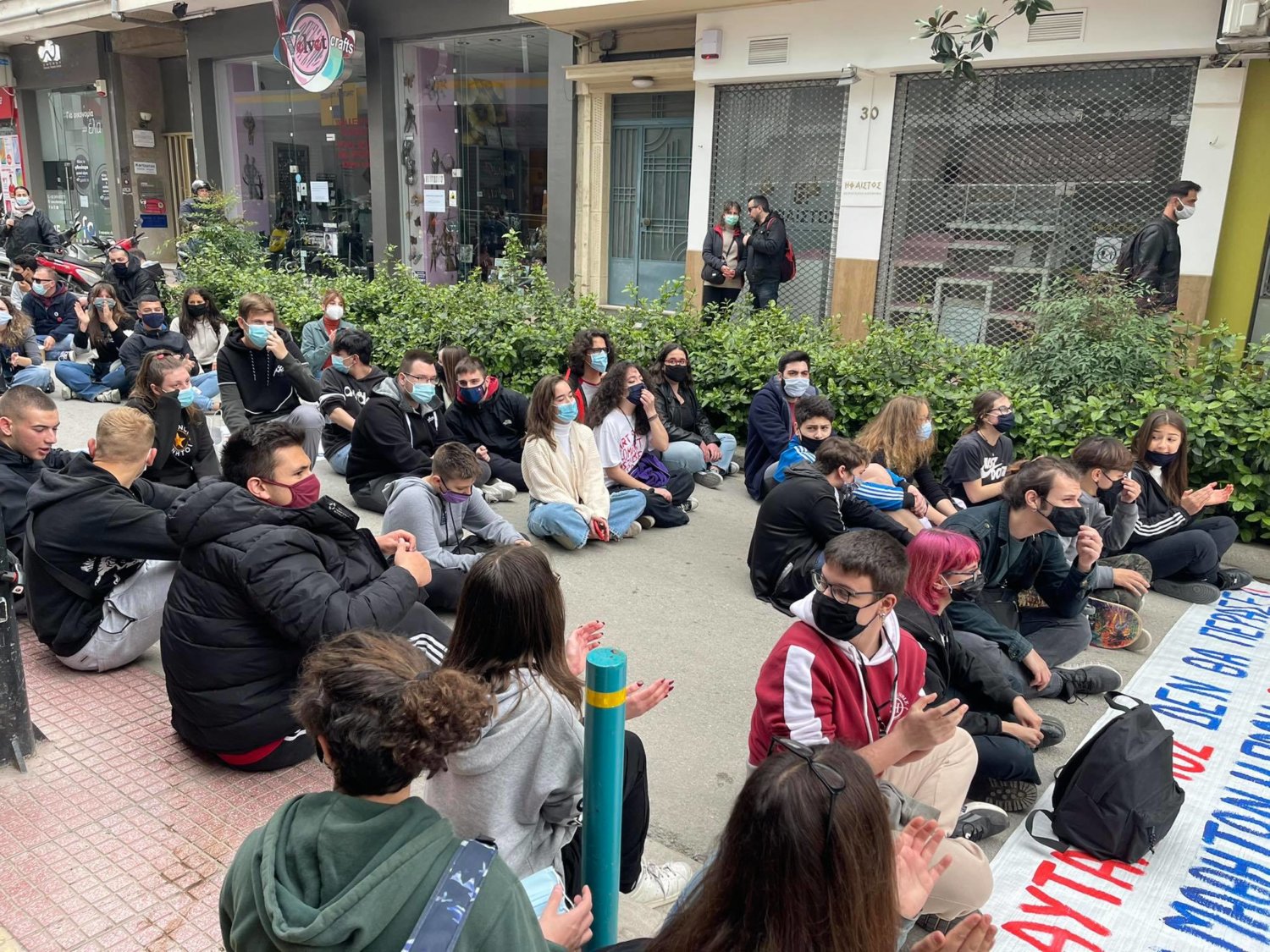 Από την καθιστική διαμαρτυρία μπροστά στην έδρα της Περιφερειακής Διεύθυνσης Εκπαίδευσης Θεσσαλίας: