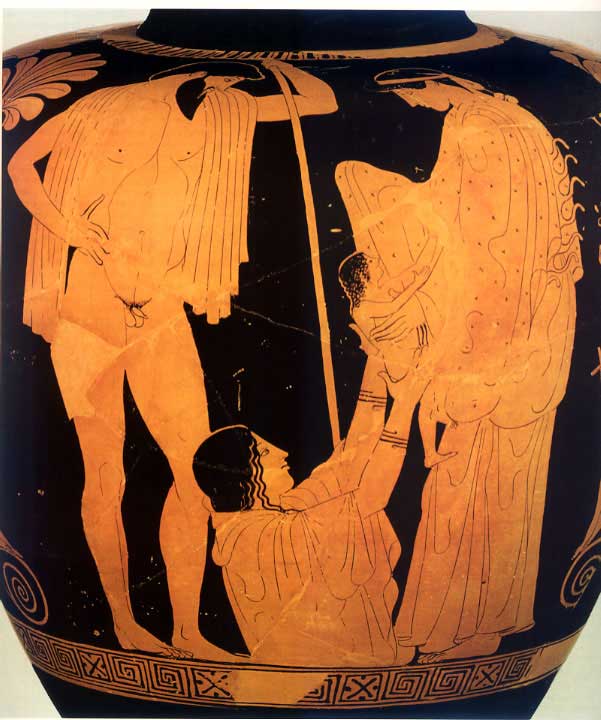 ΤΟ ΒΡΕΦΟΣ ΤΗΣ ΓΑΙΑΣ: Για τον Ερεχθέα, ο οποίος ταυτίζεται με τον Εριχθόνιο, υπάρχουν πολλοί μύθοι, που σχετίζονται με τις ιστορικές απαρχές της πόλης των Αθηνών. Όσοι από τους Έλληνες εχθρεύονταν τους Αθηναίους, διέδιδαν τον ασεβή μύθο πως ο Ερεχθέας ήταν γιος της Αθηνάς και του Ήφαιστου. Έλεγαν, πως σαν μπήκε στο εργαστήριο του Ολύμπιου τεχνίτη, η Αθηνά για να ζητήσει καινούρια άρματα, εκείνος θέλησε να σμίξει μαζί της ερωτικά. Εκείνη τον απέφυγε και τον κράτησε μακριά με το δόρυ της, μα ο σπόρος του χωλού σιδηρουργού έπεσε στη γη και έγινε η αιτία να γεννηθεί ο Ερεχθέας. Ο Ερεχθεύς ήταν γιος του Ηφαίστου και της Γαίας, ισχυρίζεται ο Όμηρος. Η μητέρα του τον παρέδωσε στην Αθηνά για να τον αναθρέψει.