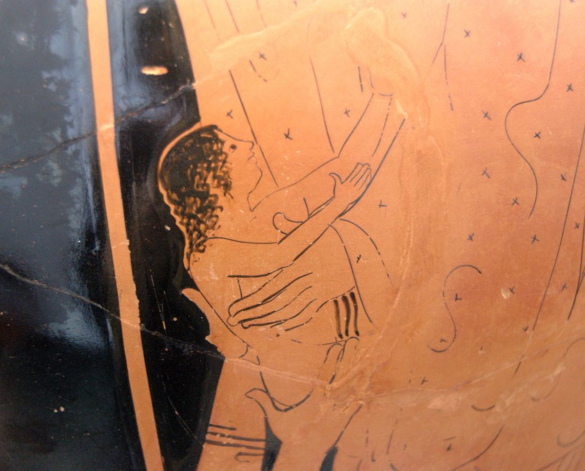 Εκείνη έσταξε στα μάτια του μωρού, δύο σταγόνες από το αίμα της Μέδουσας, μία για να σκορπά το θάνατο στους εχθρούς και μία για να είναι άτρωτος από τις αρρώστιες. Έπειτα η Αθηνά τοποθέτησε το βρέφος σε ένα μικρό κιβώτιο και το εμπιστεύθηκε στις κόρες του Κέκροπα, την Πάνδροσο, την Έρση και την Άγλαυρο, τις οποίες διέταξε να κρατήσουν κλειστό το κιβώτιο. Η Άγλαυρος και η Έρση δεν μπόρεσαν να αντισταθούν στην περιέργειά τους και άνοιξαν το κιβώτιο. Τότε είδαν μέσα ένα φίδι ή το βρέφος τυλιγμένο με φίδια. Το θέαμα αυτό τις τρόμαξε τόσο, ώστε τρελάθηκαν και γκρεμίσθηκαν από την Ακροπολη [σε άλλες εκδοχές “πρωταγωνιστεί” μόνο η Άγλαυρος].