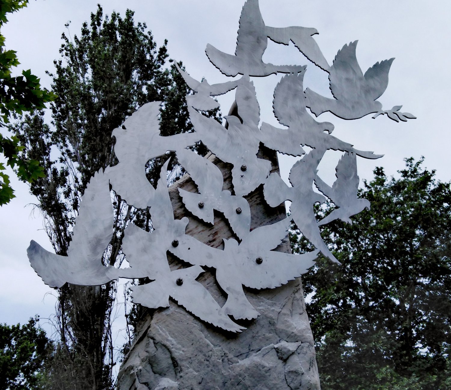 Στη συνοικία Λιβαδάκι στην πλατεία Ειρήνης, βρίσκεται το Μνημείο της ειρήνης, μία μαρμάρινη στήλη σε βάθρο, που στέφεται από ένα περιστέρι. Το έργο συμπληρώνουν άλλα ένθετα περιστέρια που πετούν προς όλες τις κατευθύνσεις. Η ακατέργαστη και ακανόνιστη στήλη παραπέμπει σε βράχο, στον οποίο τα πουλιά ξεκουράζονται πριν συνεχίσουν την πορεία τους. Ο δημιουργός αποδίδει τη μορφή των περιστεριών με απλότητα και ζωντάνια, να συμβολίζουν ανά τους αιώνες την έννοια της αγνότητας και της ειρήνης. Τον συμβολισμό συμπληρώνει το κλαδί ελιάς, που ένα από τα περιστέρια μεταφέρει με το ράμφος του.