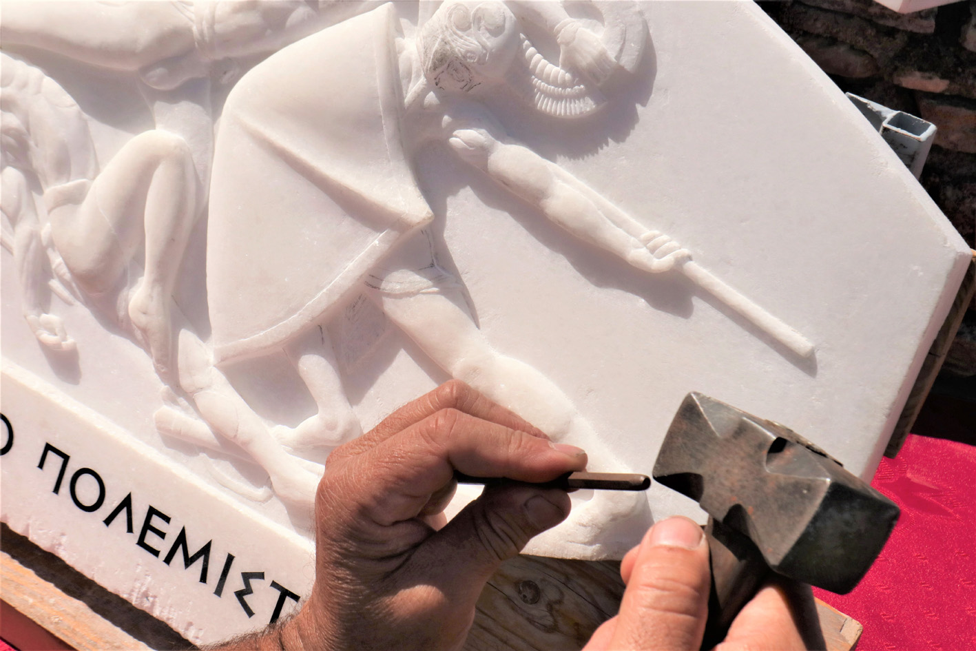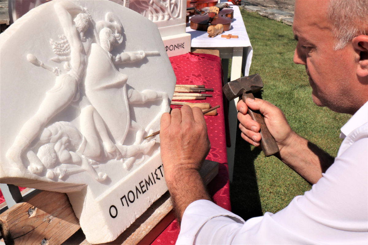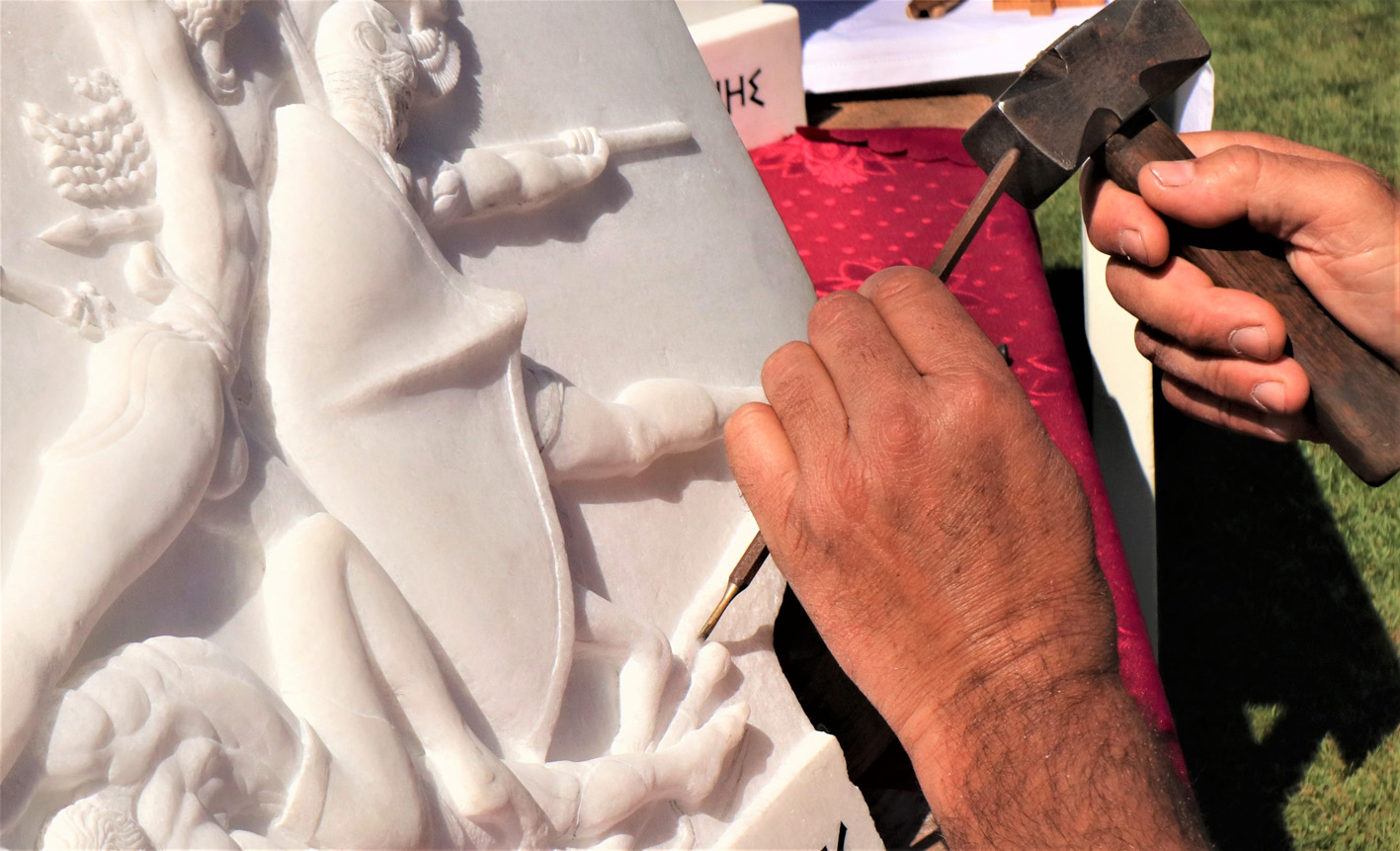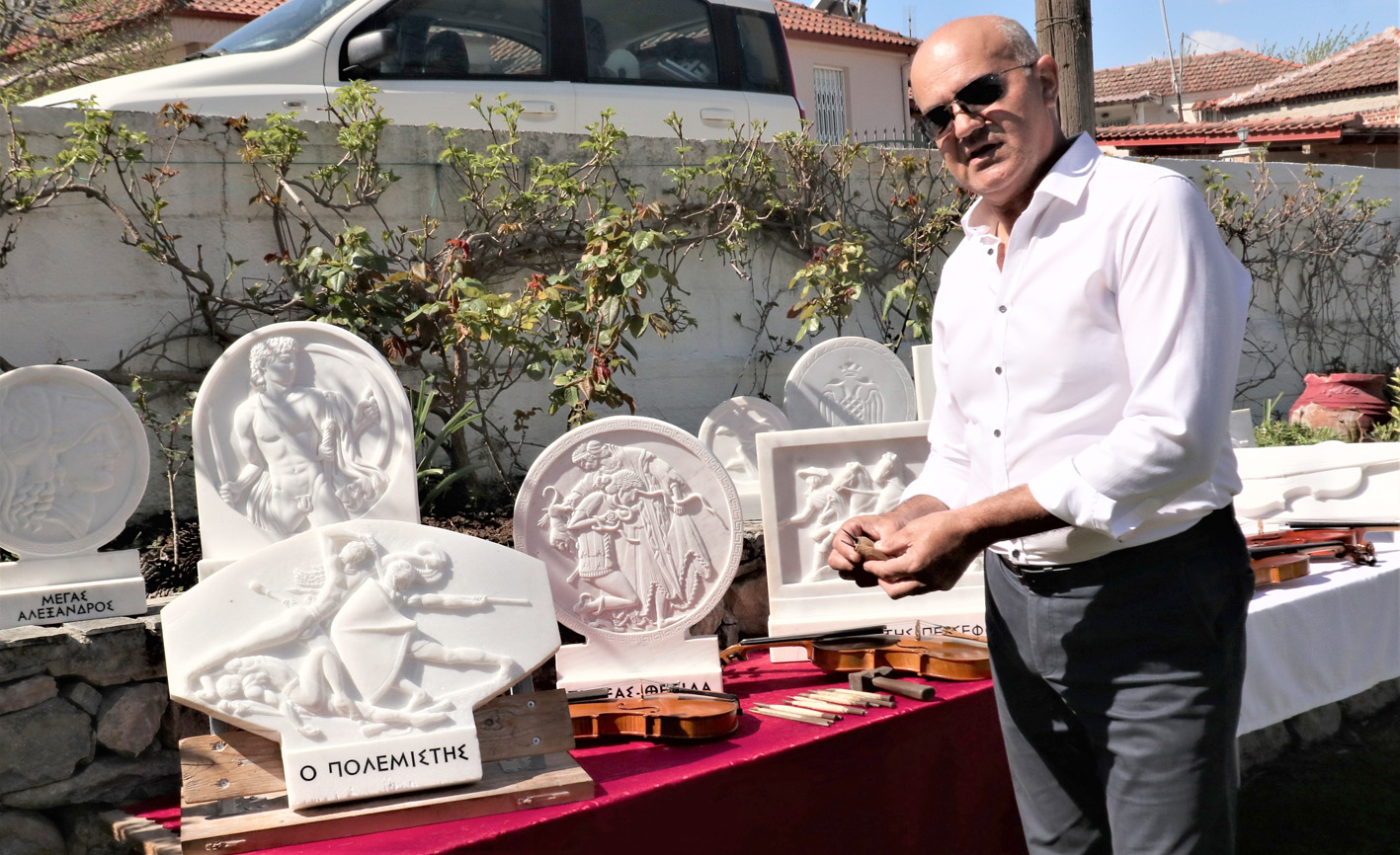 «Αφιερώνω ακόμα και 10 ώρες την ημέρα» εξηγεί αλλά δεν παραπονιέται αφού αυτό το κάνει με μεγάλη χαρά καθώς συνδυάζει με αρμονικό και δημιουργικό τρόπο την αγάπη του για την Αρχαία Ελλάδα και το μάρμαρο.