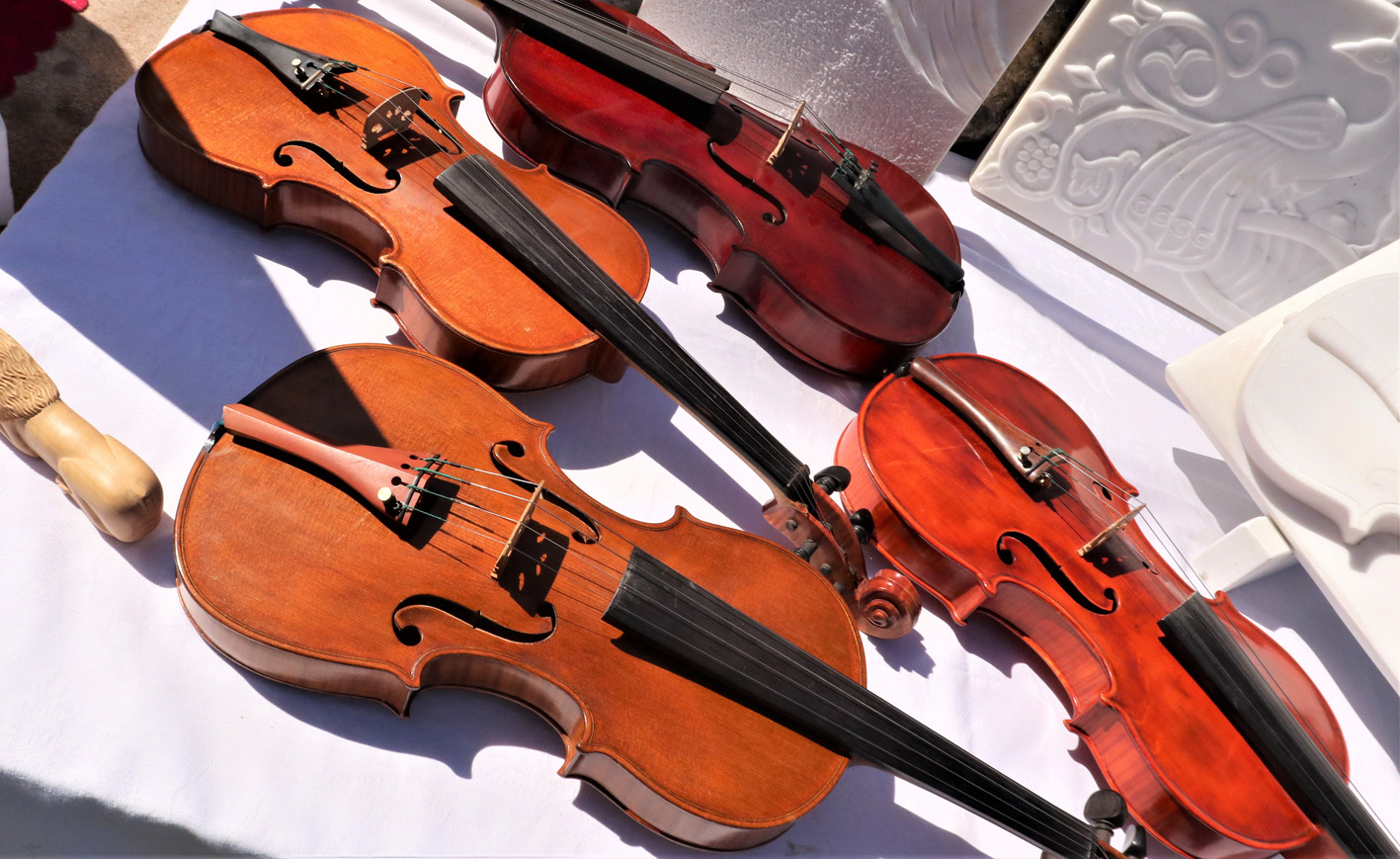 Μα δεν ήταν πάντα έτσι. Αρχικά ξεκίνησε δουλεύοντας πάνω σε ξύλο. «Στην αρχή έφτιαχνα βιολιά» λέει καθώς δείχνει μερικά από τα αποτελέσματα που είναι το ίδιο εντυπωσιακά.