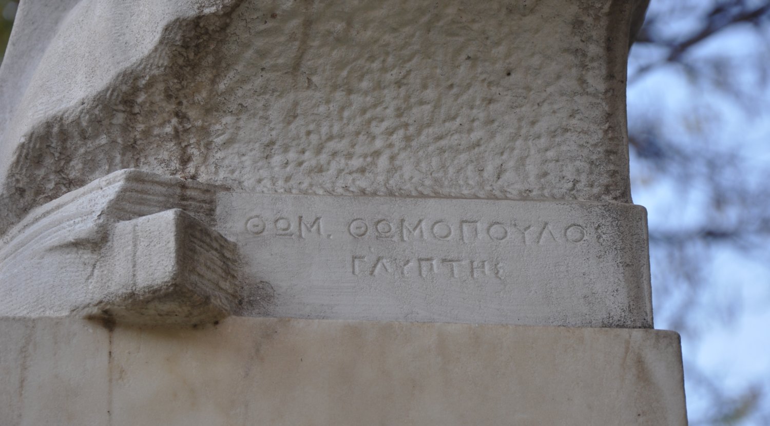 Ο γλύπτης, ζωγράφος και Καθηγητής της Ανωτάτης Σχολής Καλών Τεχνών, Θωμάς Θωμόπουλος (Σμύρνη 1873-Αθήνα 2/9/1937), κυπριακής καταγωγής, ήρθε από τη Σμύρνη στην Αθήνα το 1877. Σπούδασε στο Σχολείο των Τεχνών με δάσκαλο τον Γεώργιο Βρούτο στη γλυπτική και τον Νικηφόρο Λύτρα στη ζωγραφική. Το 1897 τού απονεμήθηκε το Θωμαΐδειο και το Χρυσοβέργειο βραβείο.