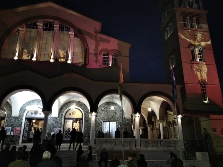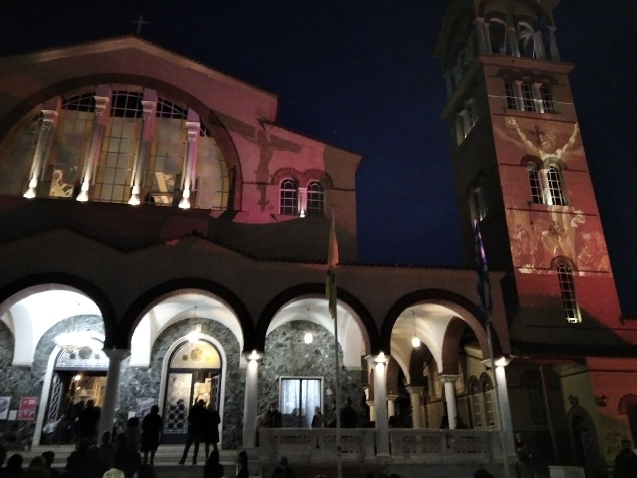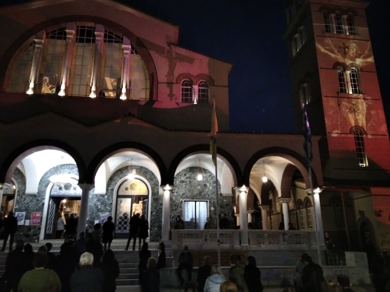 Μια πρωτόγνωρη εμπειρία έζησαν οι Λαρισαίοι, καθώς με πρωτοβουλία του Λαρισαίου σκηνοθέτη Πασχάλη Μάντη και του επιχειρηματία Κώστα Κουκουράβα και με τη βοήθεια της τεχνολογίας προβλήθηκαν στην πρόσοψη του Μητροπολιτικού Ναού του Αγίου Αχιλλίου και στο καμπαναριό τα Πάθη του Κυρίου.