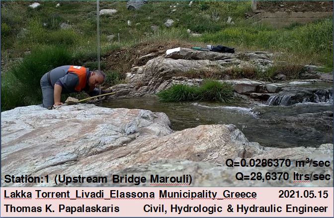 Η μέτρηση της παροχής του νερού έγινε από τον Θωμά Παπαλάσκαρη, MSc. Πολιτικό/Υδρολόγο Μηχανικό.