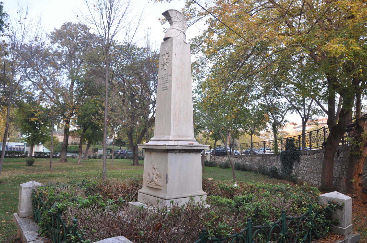 Κατεβαίνοντας τα σκαλοπάτια από την κεντρική είσοδο του πάρκου του Αλκαζάρ, στα δεξιά μας αντικρίζουμε το παλαιό Ηρώο της Λάρισας: το Μνημείο πεσόντων Αξιωματικών και Οπλιτών του 1897, το οποίο φιλοτέχνησε το 1909 ο Γεώργιος Ξενάκης.
