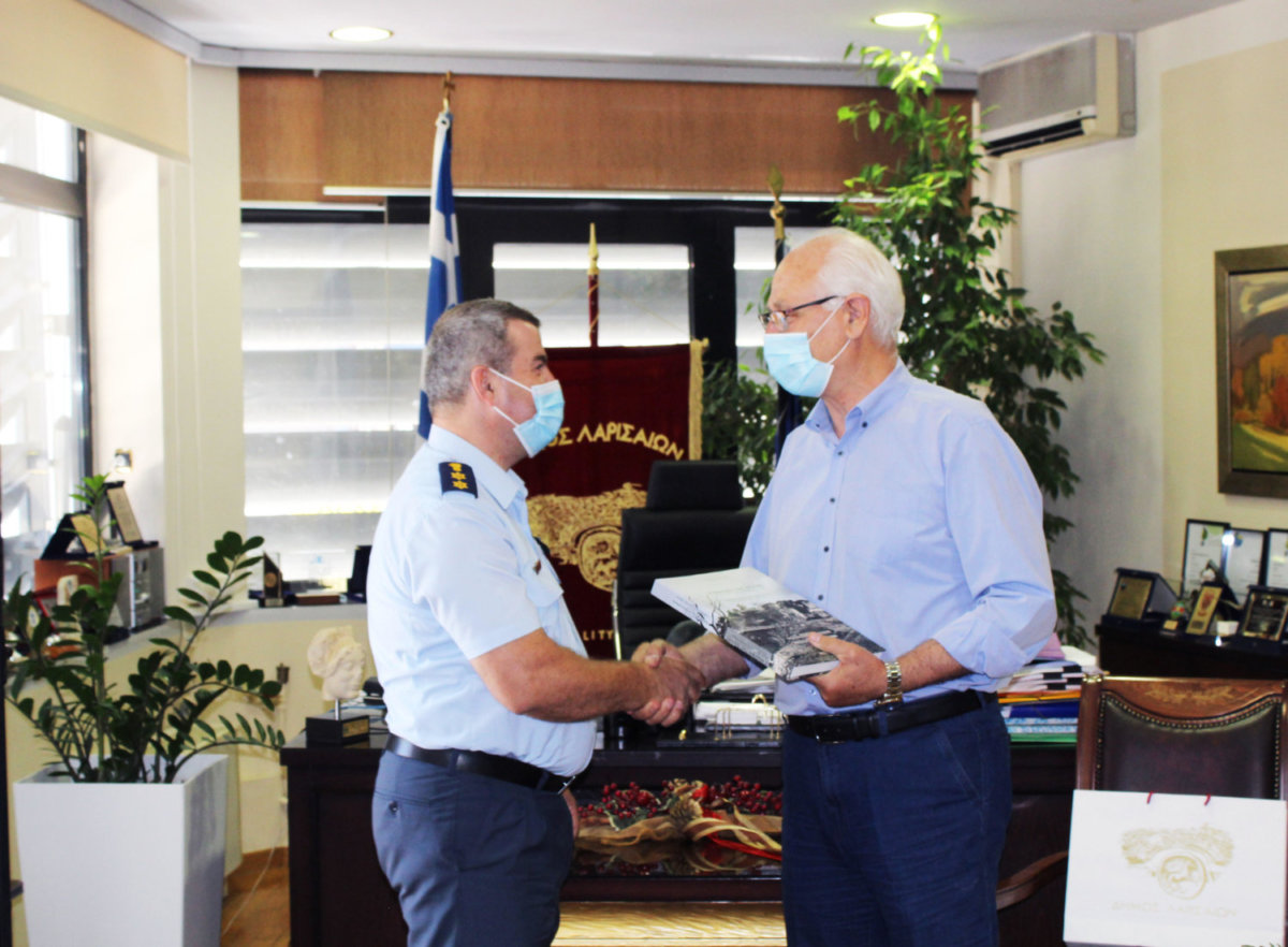 Στο τέλος της συνάντησης ο Δήμαρχος προσέφερε στον κ. Βλαχογιάννη την έκδοση του Δήμου “Η μνήμη της πόλης Λάρισα κατοχή – Απελευθέρωση 1941-1944”.