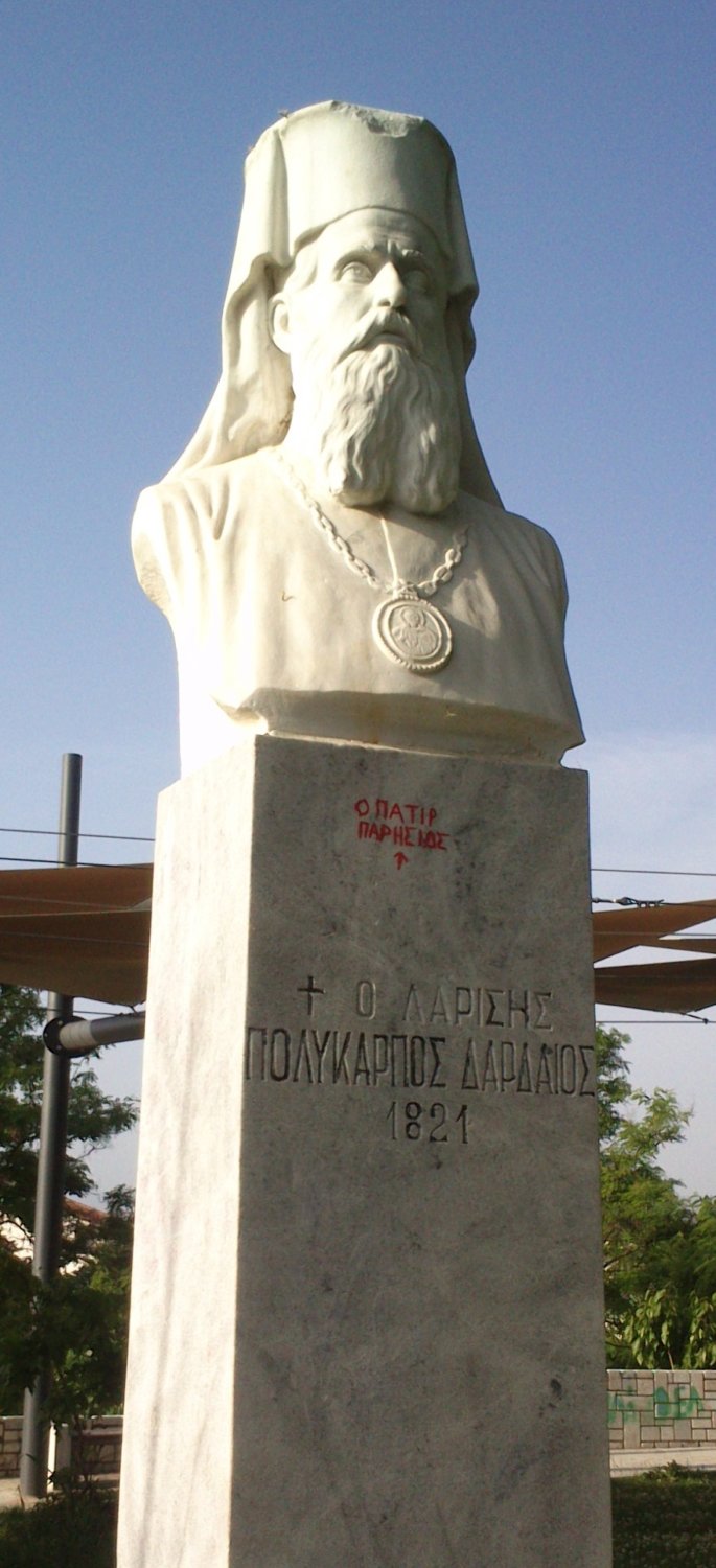 Ο Πολύκαρπος Δαρδαίος (Δάρδα Βορείου Ηπείρου 1778-Λάρισα 1821), κατά κόσμον Πέτρος Βέσσης, γεννήθηκε το 1778 στη Δάρδα της Βορείου Ηπείρου κοντά στην Κορυτσά. Παρακολούθησε μαθήματα σε Σχολές της περιοχής (Μοσχόπολη, Βεράτι, Καστοριά), και στα Ιωάννινα μαθήτευσε στο εκπαιδευτήριο του Ψαλλίδα, που τότε ήταν στην ακμή του. Το 1806 χειροτονήθηκε διάκονος, στην Κωνσταντινούπολη το 1808 εκλέχθηκε βοηθός επίσκοπος του Οικουμενικού Θρόνου, το 1809 έγινε Τοποτηρητής της Μητροπόλεως Εφέσου και το 1810 χειροτονήθηκε Μητροπολίτης Λαρίσης. Το 1811 ήρθε στη Λάρισα και το 1812 μετέβη στα Ιωάννινα, όπου ανέπτυξε φιλική σχέση με τον Αλή πασά, με τον οποίο αργότερα συγκρούστηκε. Στη Λάρισα προσπάθησε να συγκεντρώσει χρήματα από τις οικονομικές υποχρεώσεις των χριστιανών της μητροπόλεώς του στο διπλάσιο των προκατόχων του, προκαλώντας αντιδράσεις. Ακολούθησαν προστριβές και με τον διοικητή της Θεσσαλίας, Βελή πασά, καθώς ο Πολύκαρπος είχε συναντήσεις με καπεταναίους της περιοχής. Το 1818 αναγκάσθηκε να καταφύγει στην Κωνσταντινούπολη. Επέστρεψε στη Λάρισα το 1820, όμως με την έναρξη της επανάστασης, συγκρούστηκε με τον Μαχμούτ πασά (Δράμαλη), καθαιρέθηκε, συνελήφθη, φυλακίσθηκε και στις 17/9/1821 αποκεφαλίσθηκε στις όχθες του Πηνειού, κοντά στην εκκλησία του Αγ. Αχιλλείου.