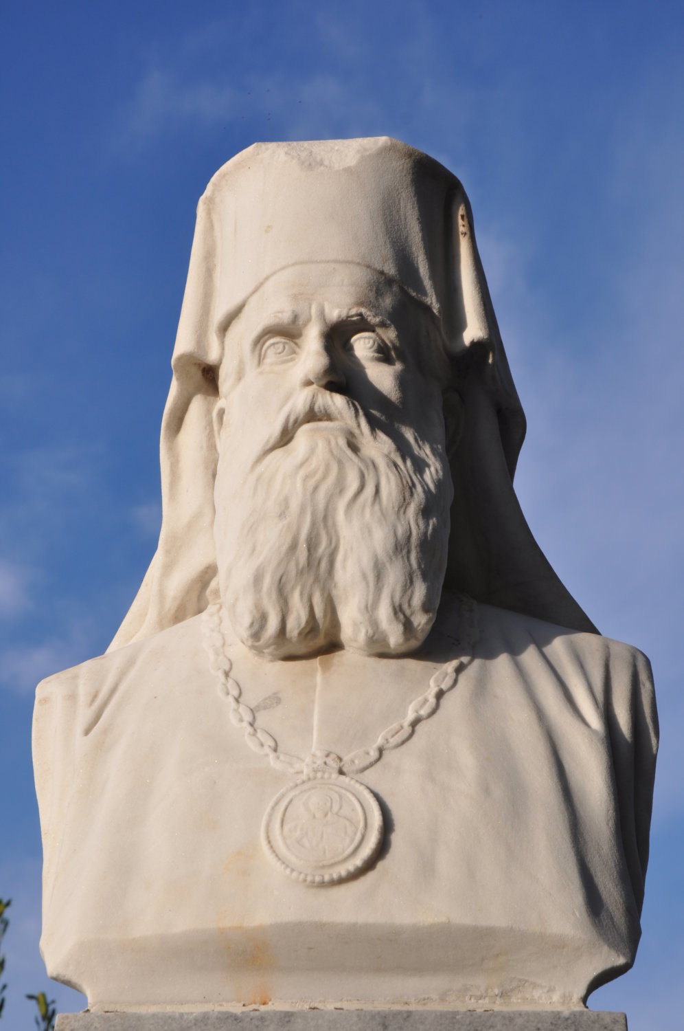 Απέναντι από τον Μητροπολιτικό Ναό του Αγίου Αχιλλείου, στη βόρεια πλευρά του λόφου του Φρουρίου, σ’ έναν ελεύθερο χώρο με πράσινο, συναντούμε την προτομή του Μητροπολίτη Λαρίσης, Πολύκαρπου Δαρδαίου, έργο του γλύπτη Μιχάλη Τόμπρου.