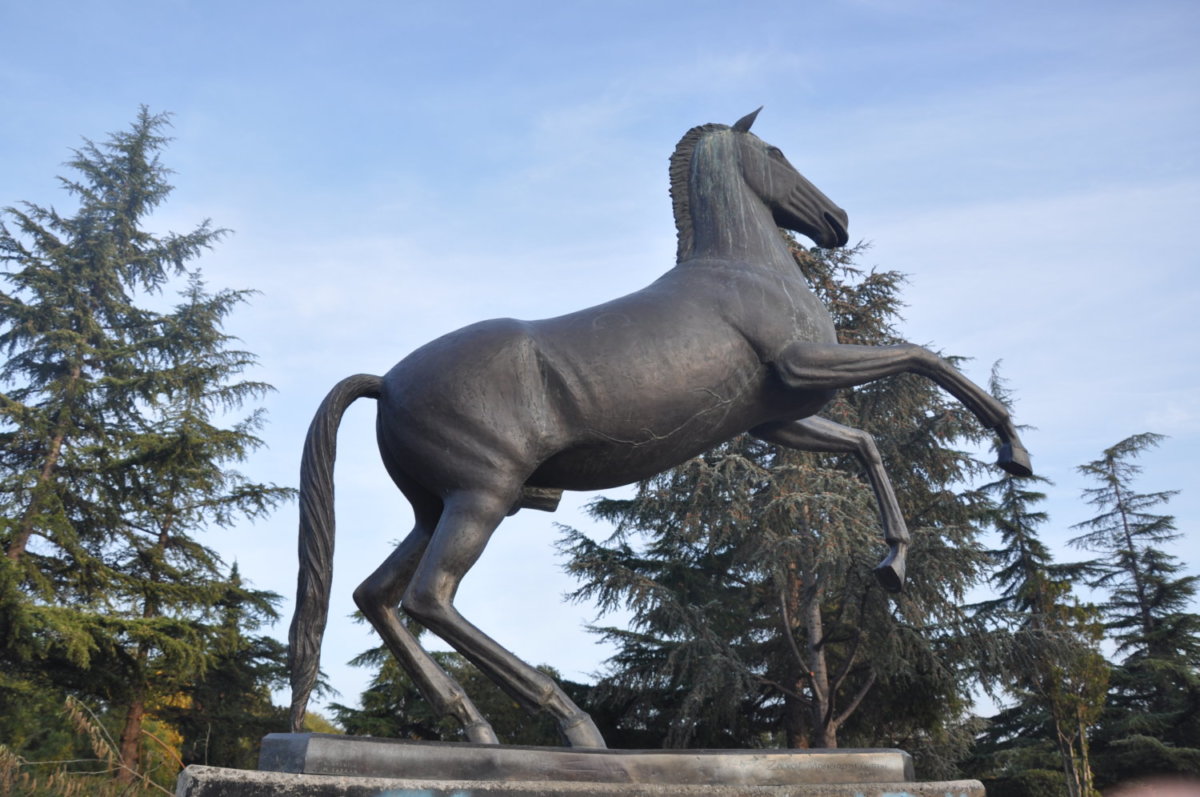Στο πάρκο Αλκαζάρ στήθηκε το 2004 σε ψηλό βάθρο το έργο του γλύπτη, που απεικονίζει το σύμβολο της πόλης, το άλογο. Πρόκειται για επιβλητικό έργο σε μπρούτζο (Κ. ΧΥΤΗΡΙΟ Μ. ΓΑΒΑΛΑ), που διακρίνεται για την κίνησή του και την απόδοση των ανατομικών λεπτομερειών. Το άλογο παριστάνεται να στέκεται στα δύο πίσω πόδια του, ενώ τα δύο μπροστινά πόδια είναι ανασηκωμένα. Το ανοιχτό στόμα υποδηλώνει το χλιμίντρισμα του ζώου. Η ιδιαιτερότητα του χώρου και το πράσινο που το περιβάλλει, προβάλλουν το έργο όχι μόνο στο εσωτερικό του πάρκου, αλλά και στους διερχόμενους. Η υπογραφή του γλύπτη διακρίνεται στο βάθρο.