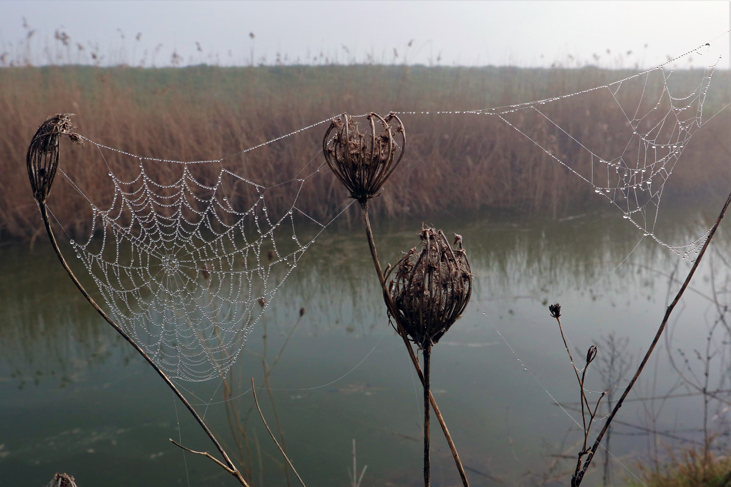 Μπορεί το καλοκαίρι στη Λάρισα να χαρακτηρίζεται από τις υψηλές θερμοκρασίες όμως υπάρχουν κάποιες στιγμές το χάραμα που δίπλα από το ποτάμι «βασιλεύει» η δροσιά. Μια ανάσα από τον Πηνειό στήνουν καρτέρια οι αράχνες και ο συνδυασμός είναι ότι χρειάζεται για να στηθεί ένα ωραίο φωτογραφικό σκηνικό για χάρη του Larissanet.gr.