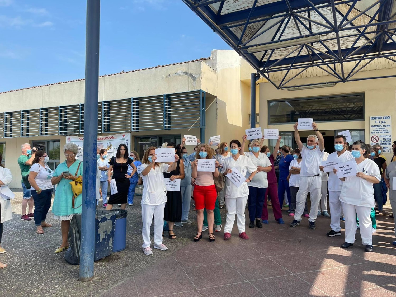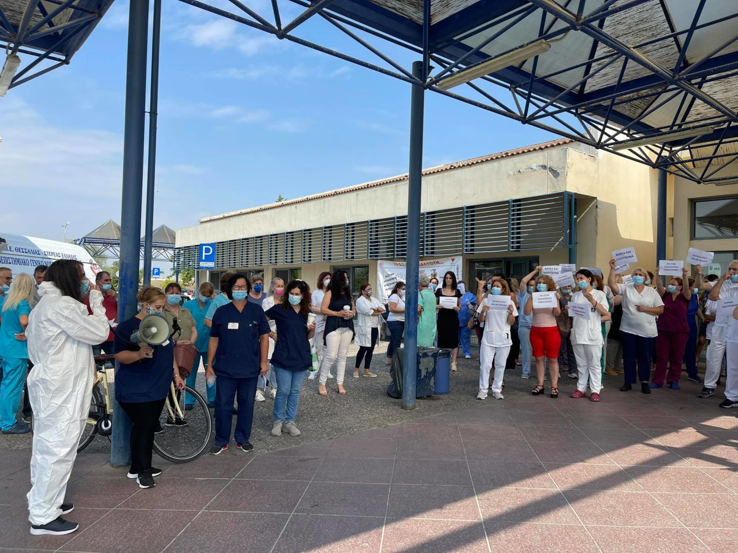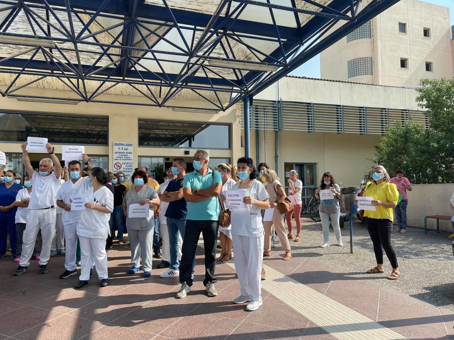 «Σήμερα Δευτέρα 19 Ιουλίου 2021 και ώρα 10:00πμ μπροστά στην είσοδο του Νοσοκομείου, πραγματοποιήθηκε συγκέντρωση διαμαρτυρίας των εργαζομένων του ΠΓΝΛ, για την απόφαση της Κυβέρνησης, να καταστήσει υποχρεωτικό τον εμβολιασμό των υγειονομικών.