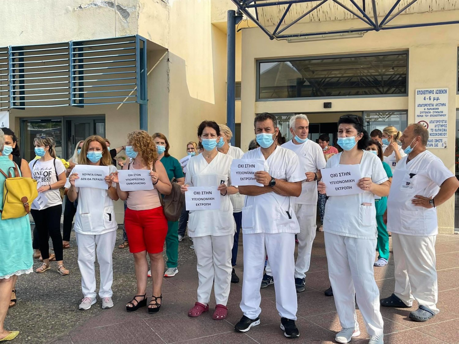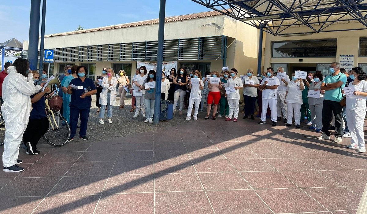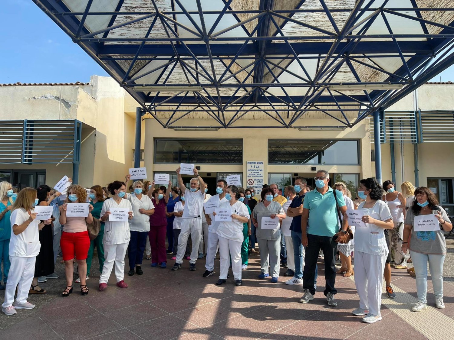 «Σήμερα Δευτέρα 19 Ιουλίου 2021 και ώρα 10:00πμ μπροστά στην είσοδο του Νοσοκομείου, πραγματοποιήθηκε συγκέντρωση διαμαρτυρίας των εργαζομένων του ΠΓΝΛ, για την απόφαση της Κυβέρνησης, να καταστήσει υποχρεωτικό τον εμβολιασμό των υγειονομικών.