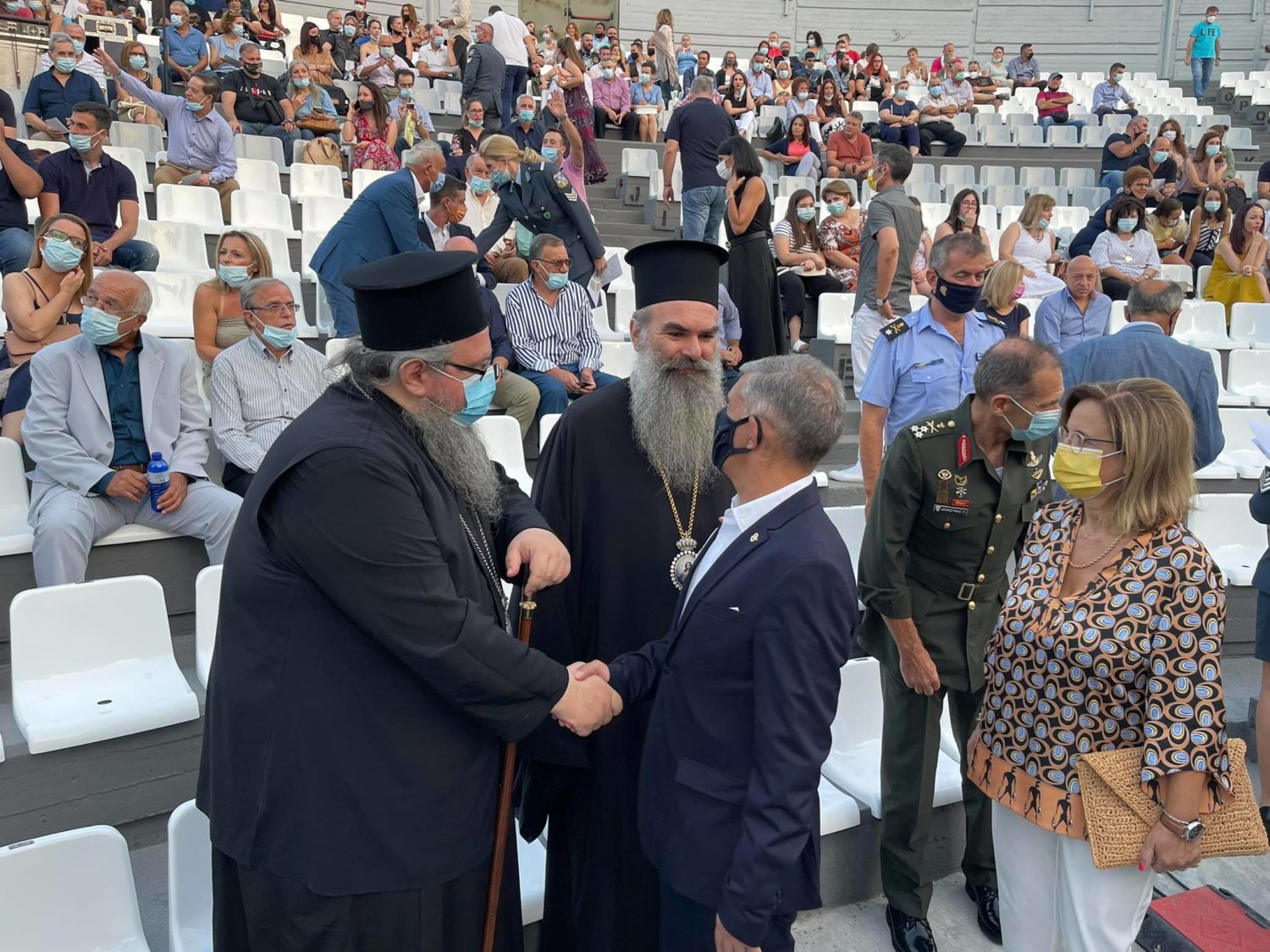 Χαιρετισμούς απηύθυναν ο σεβασμιότατος μητροπολίτης Λαρίσης και Τυρνάβου κ. Ιερώνυμος, ο περιφερειάρχης Θεσσαλίας, Κώστας Αγοραστός, καθώς και ο Αστυνομικός Διευθυντής Θεσσαλίας, Αστέριος Μαντζιώκας.